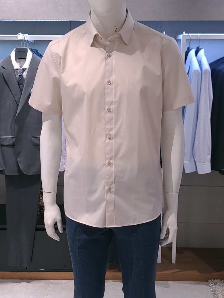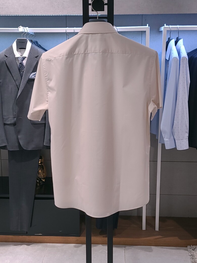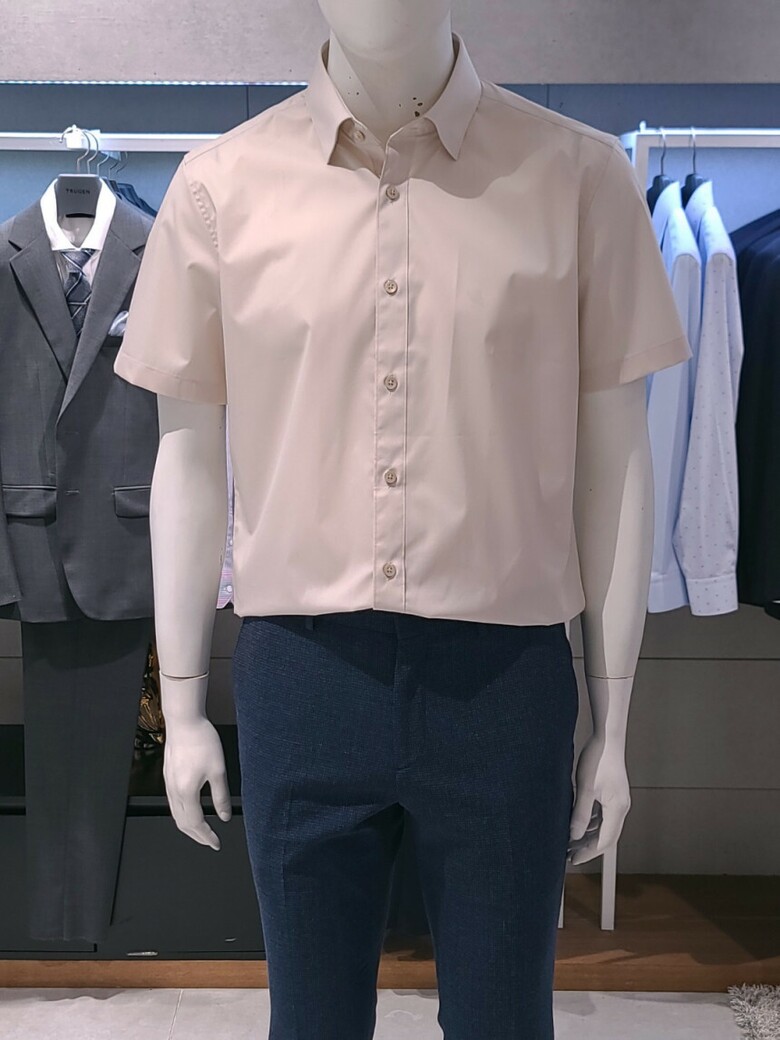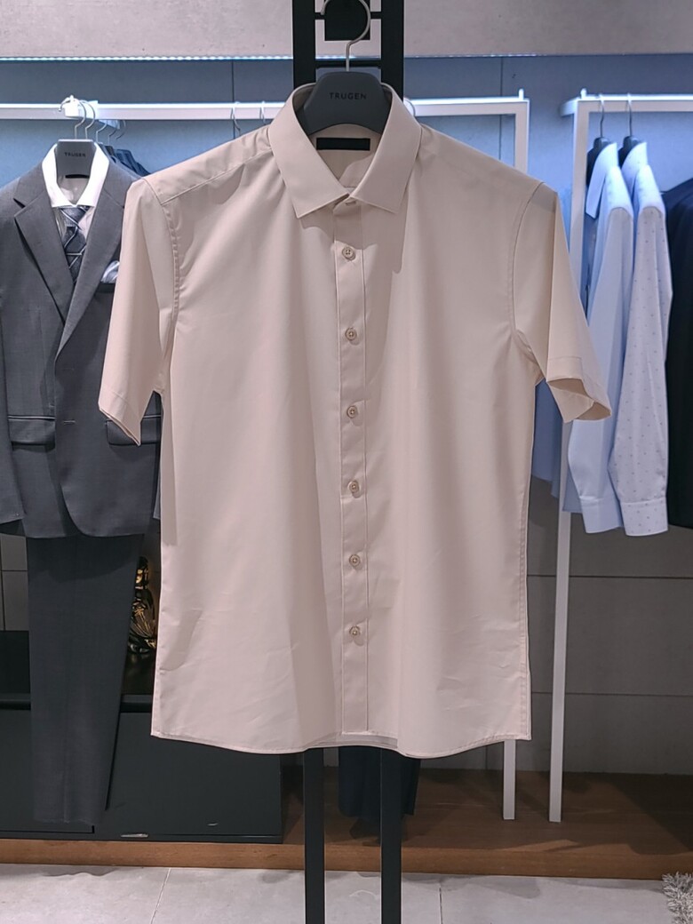 트루젠 베이지 면스판 기본핏 남자 반팔 셔츠 2222RD053051