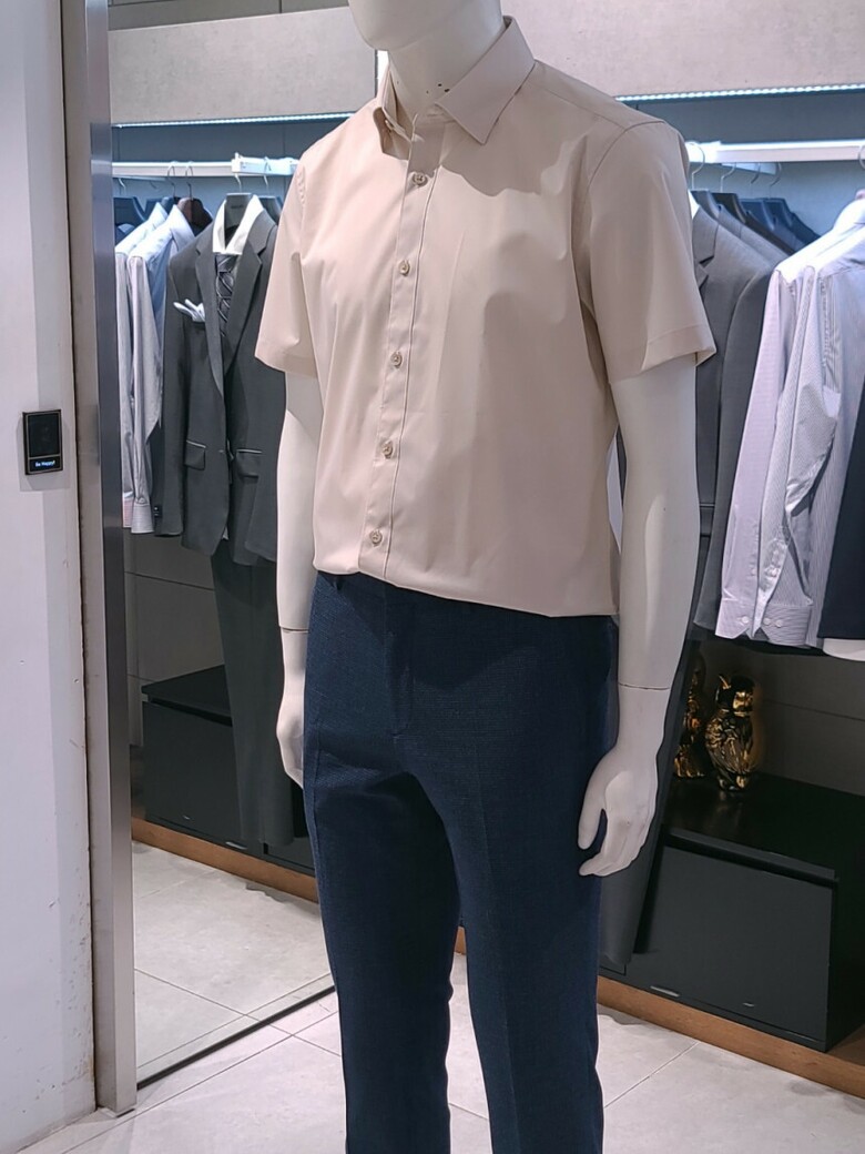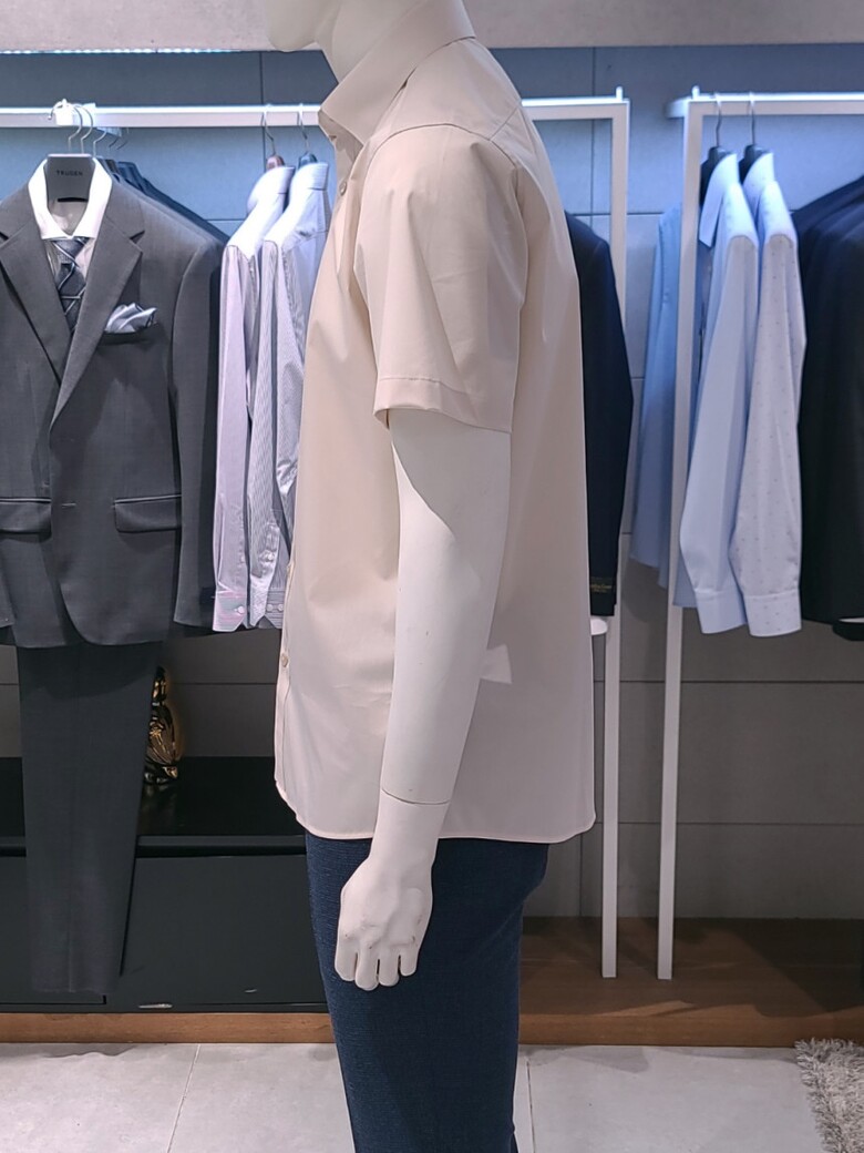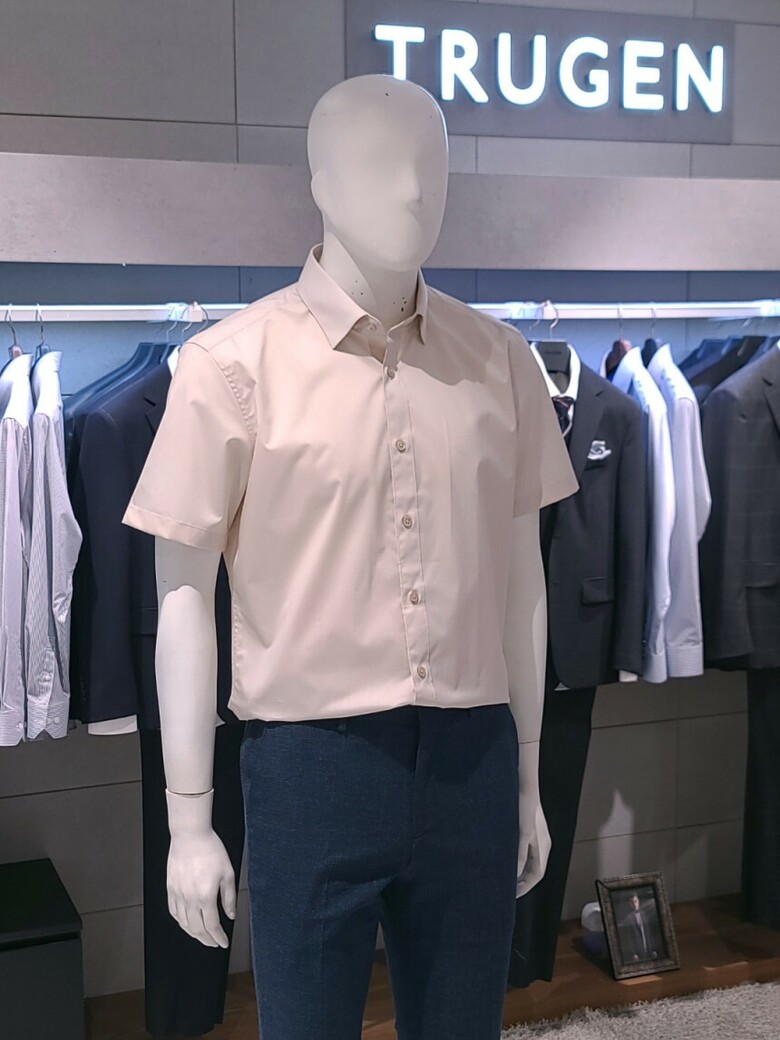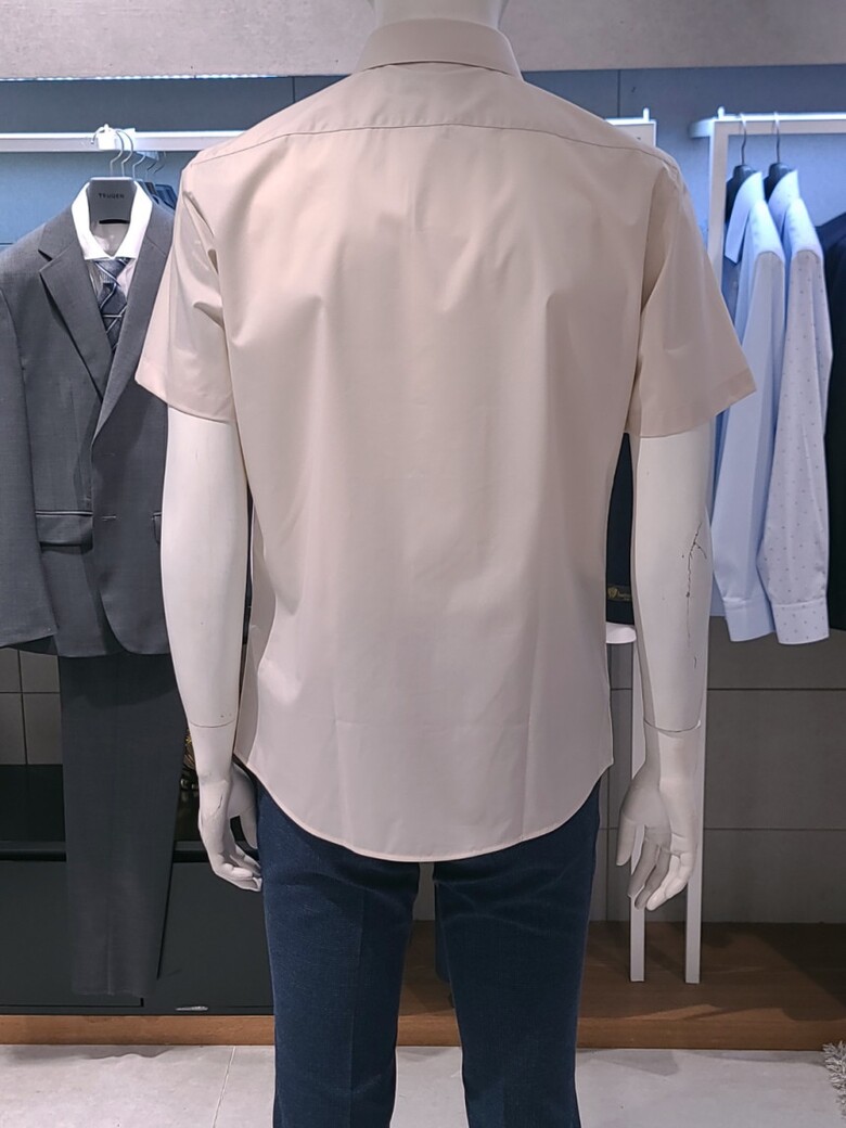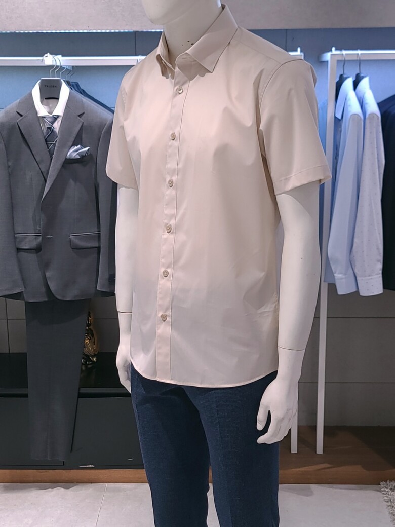 트루젠 베이지 면스판 기본핏 남자 반팔 셔츠 2222RD053051