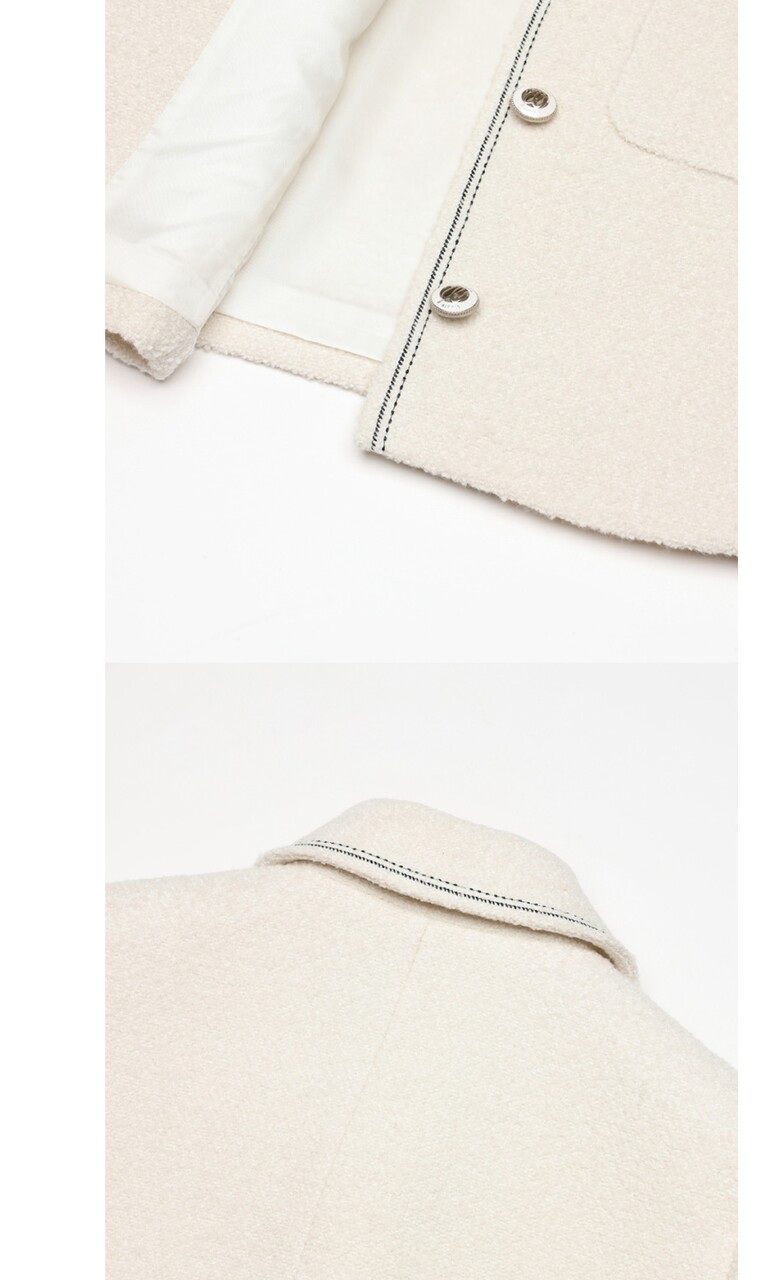 고급스러운 버튼 장식과 전체적으로 들어간 자수 라인으로 포인트를 주었습니다.