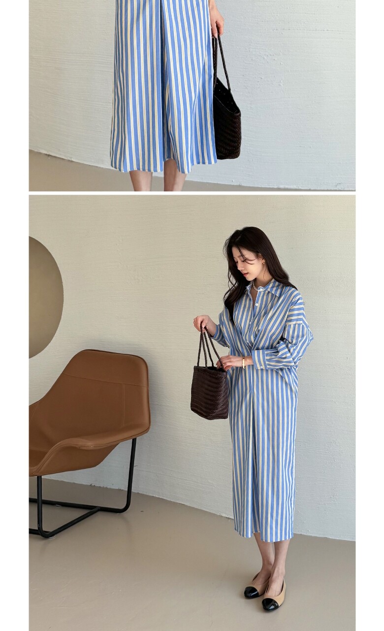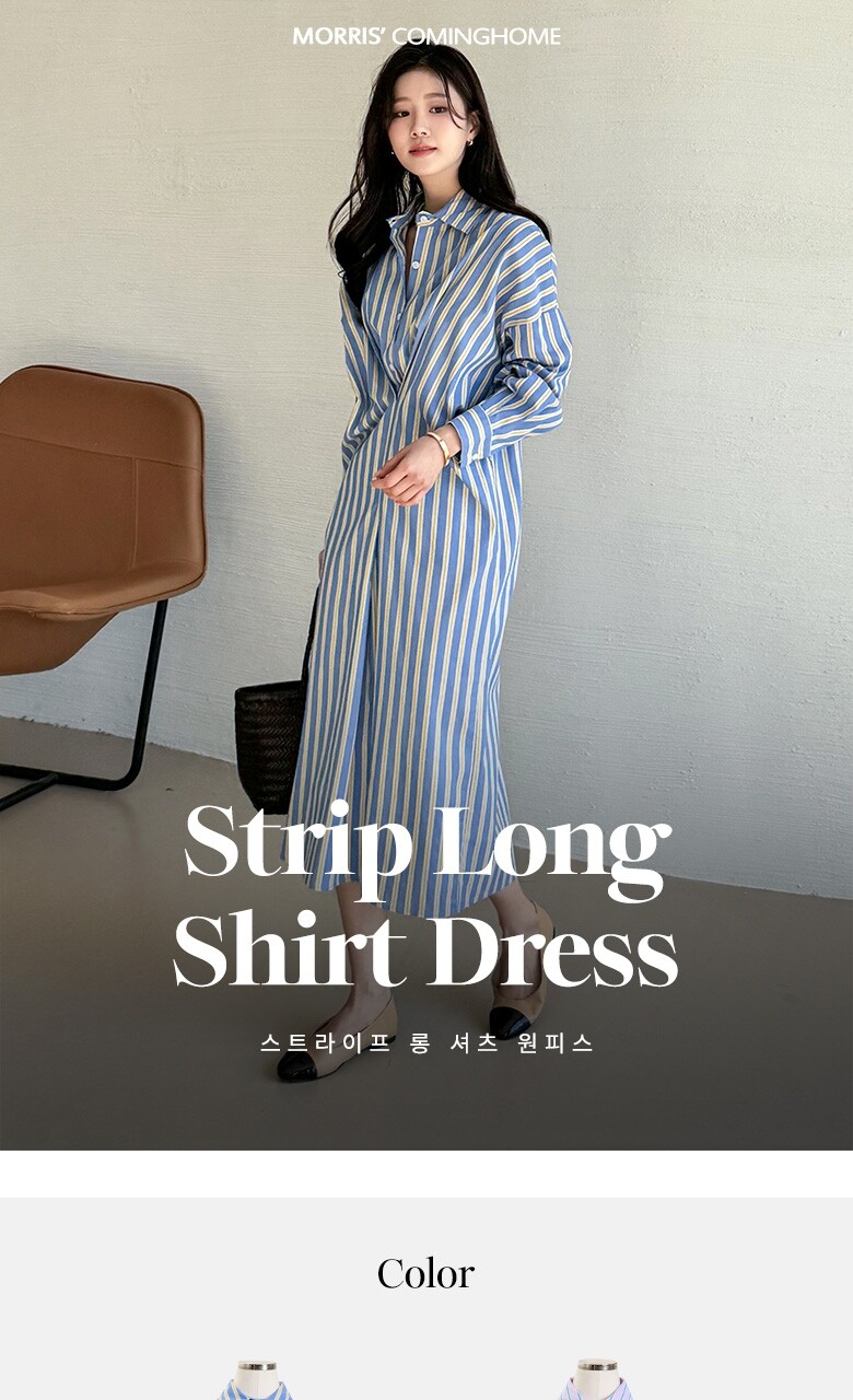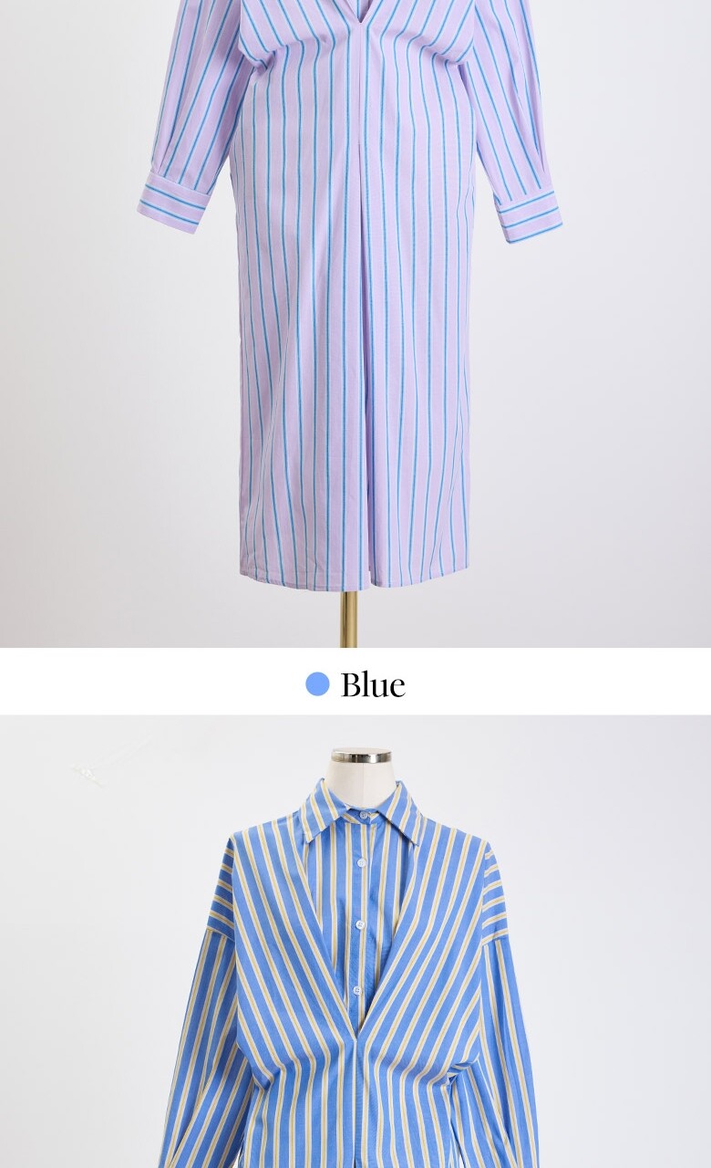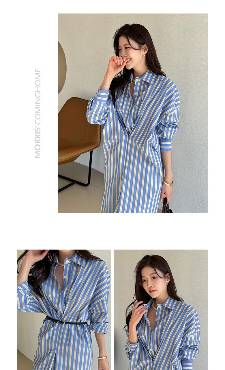 스트라이프 롱 셔츠 원피스_M2503OP011A
