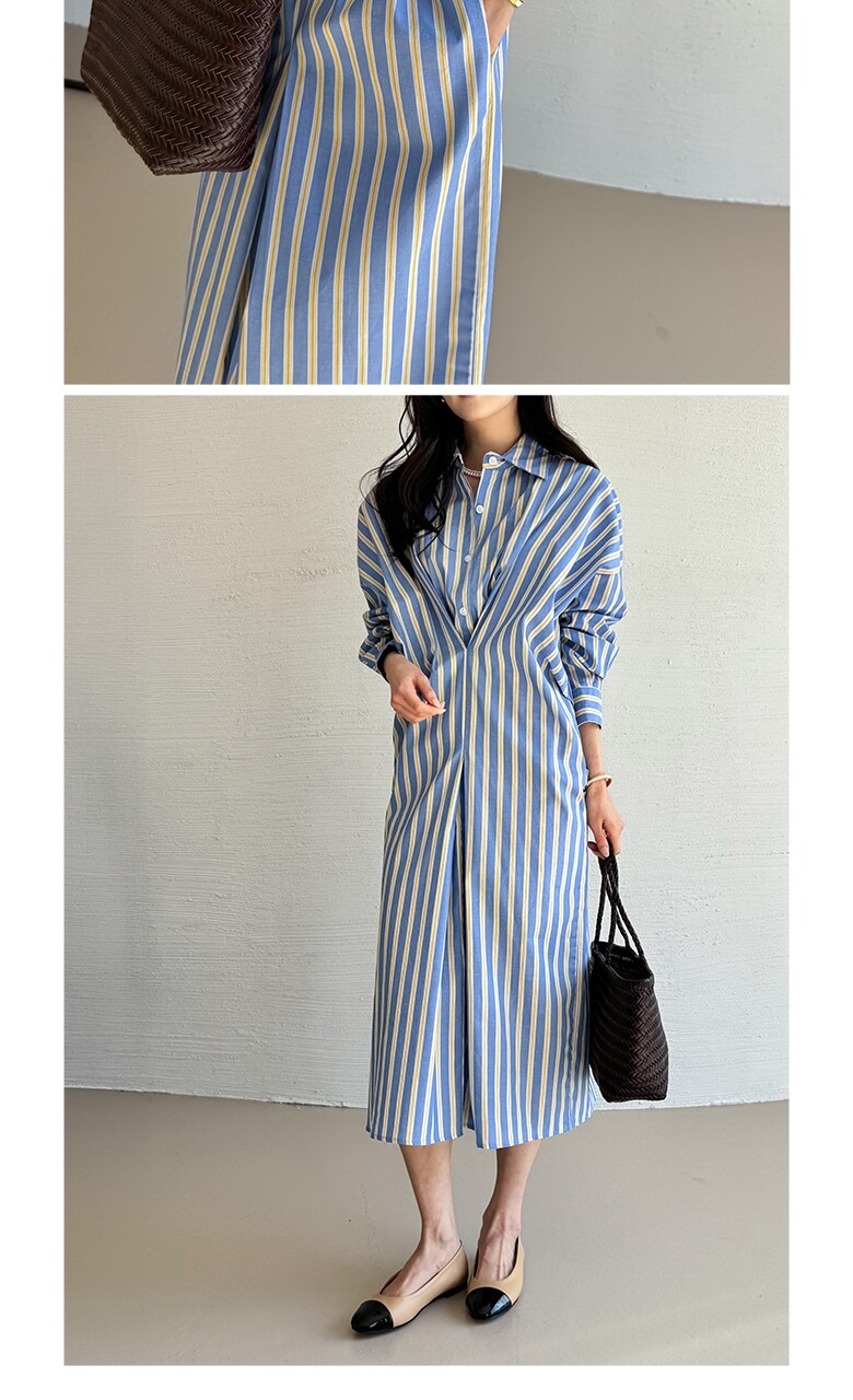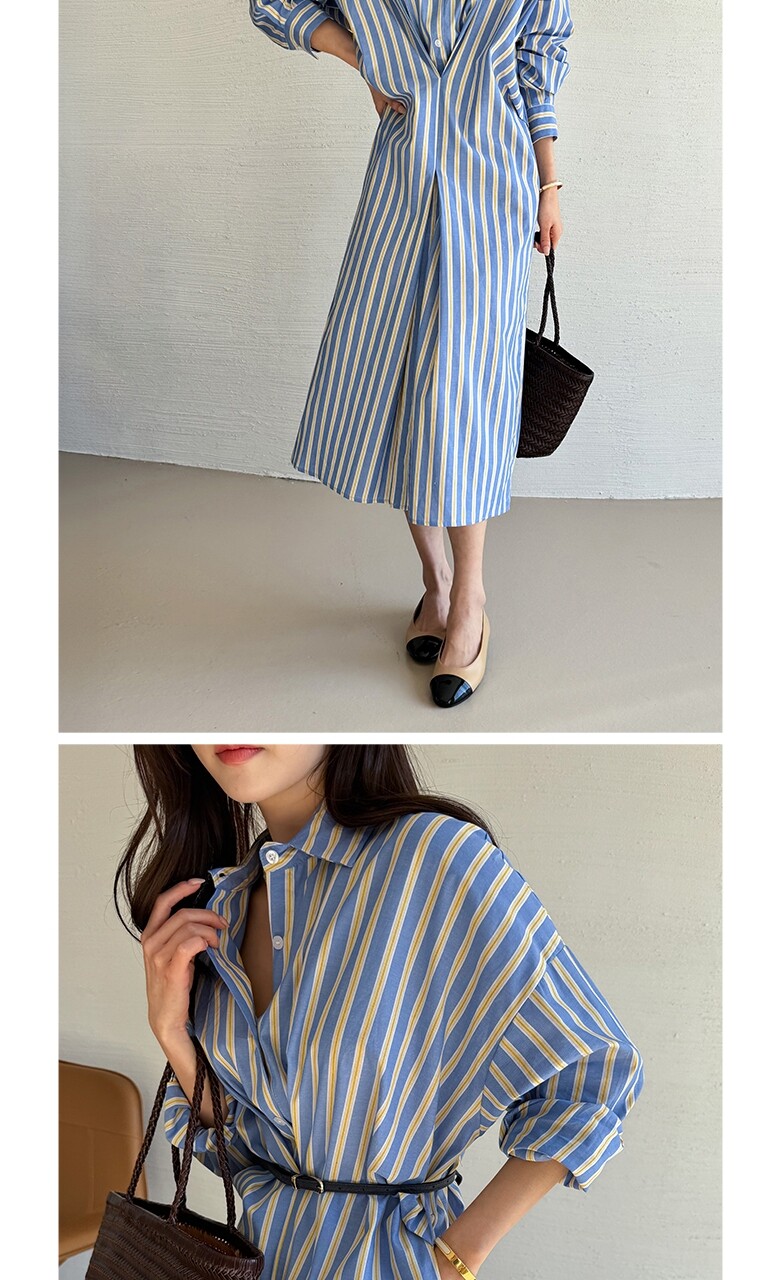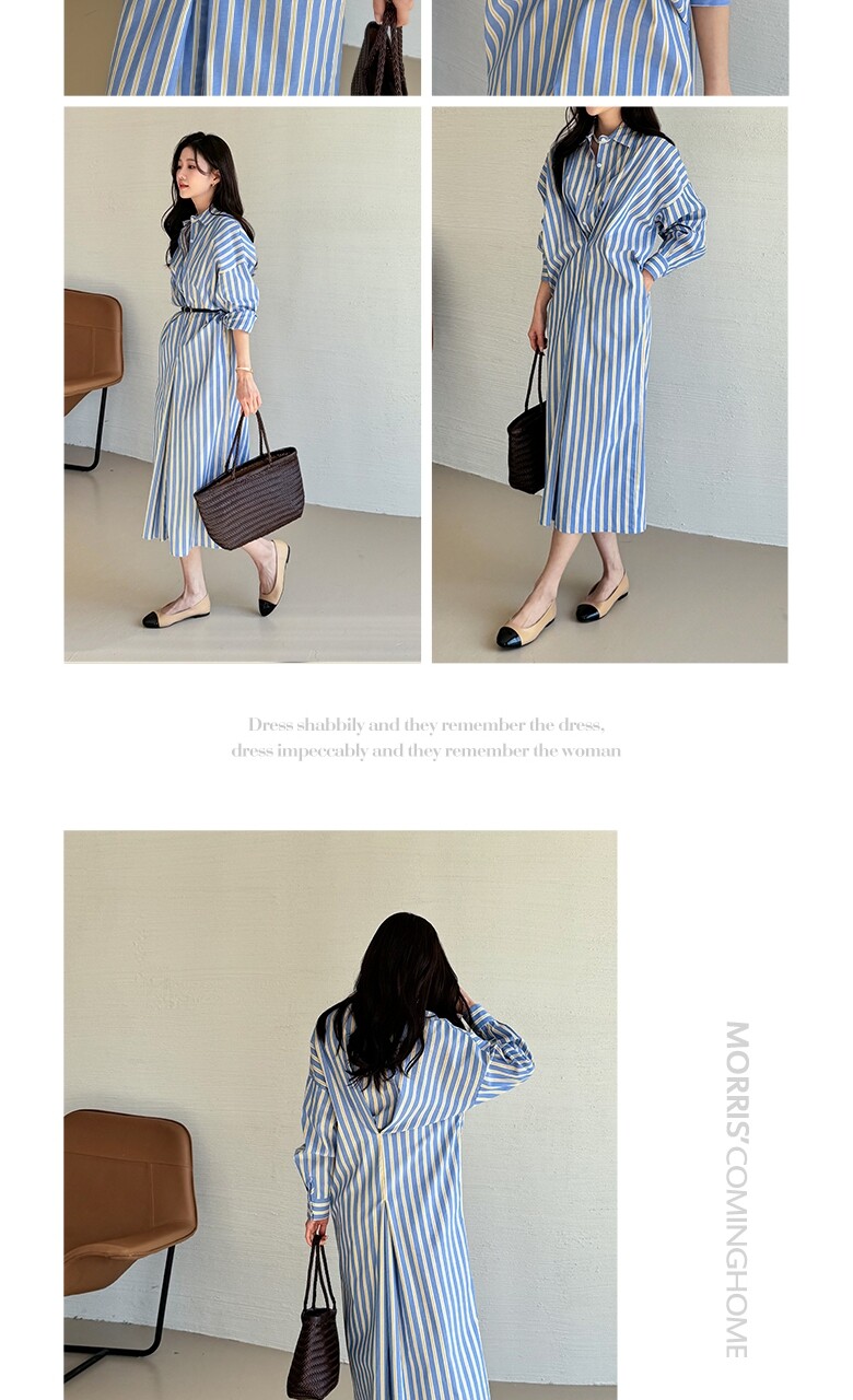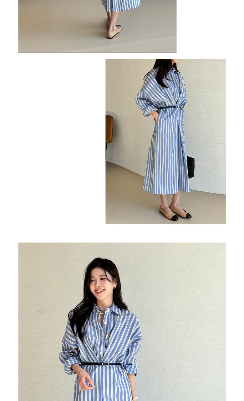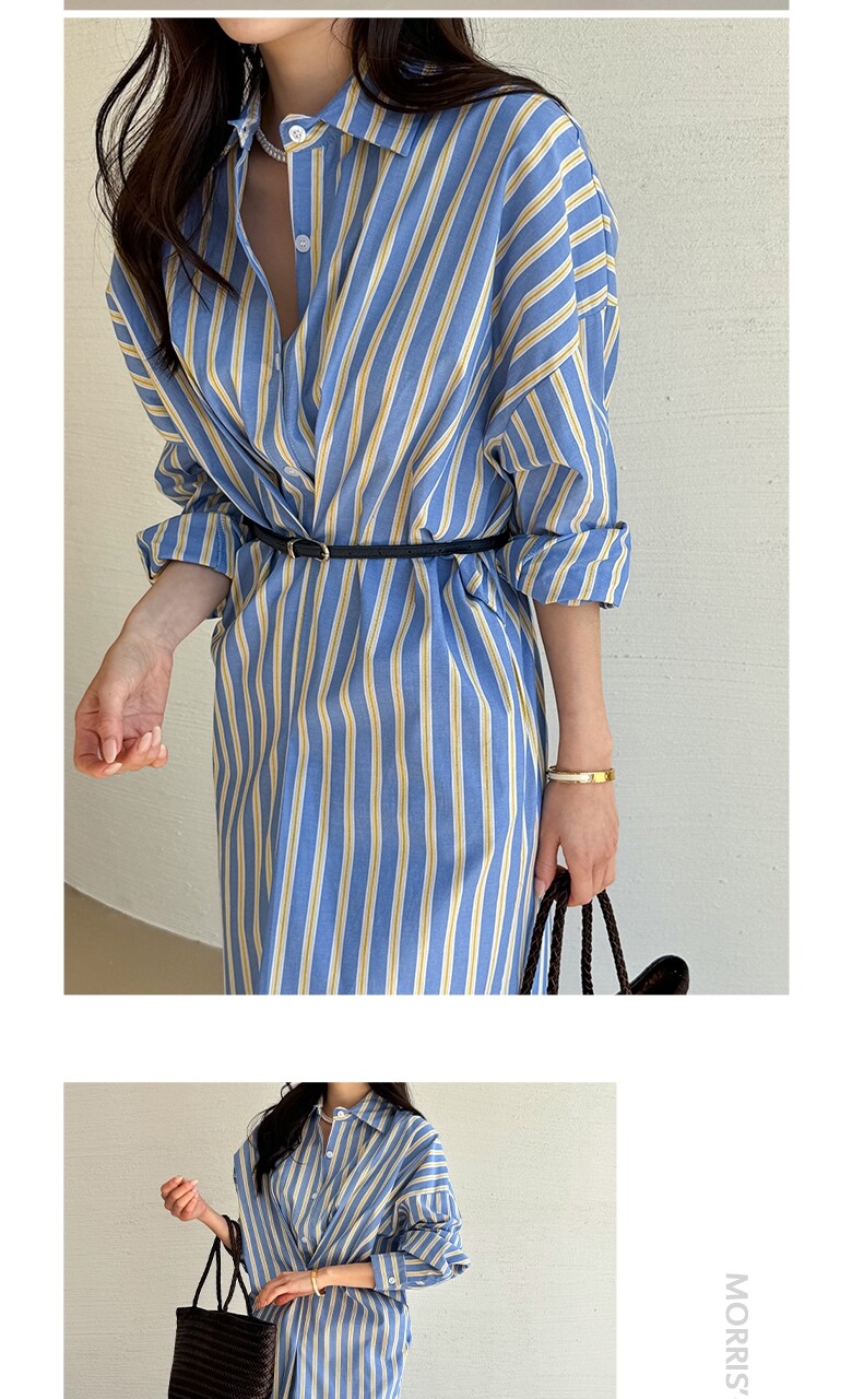 스트라이프 롱 셔츠 원피스_M2503OP011A