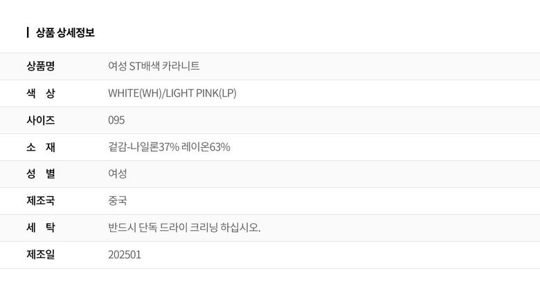 | 2. 색상 | 색상:WHITE(WH)/LIGHT PINK(LP) |