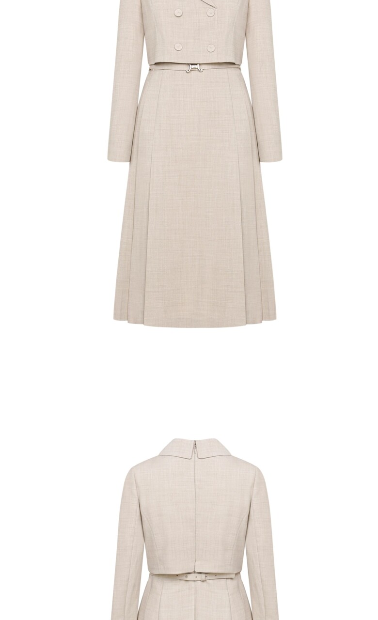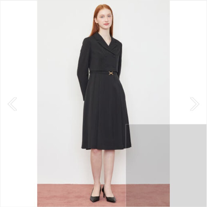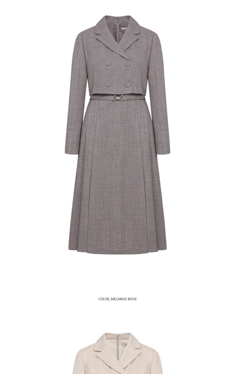 더블버튼 포인트와 벨트 참 장식으로 더욱 페미닌하며|*| 엘레강스한 무드를 자아냅니다.