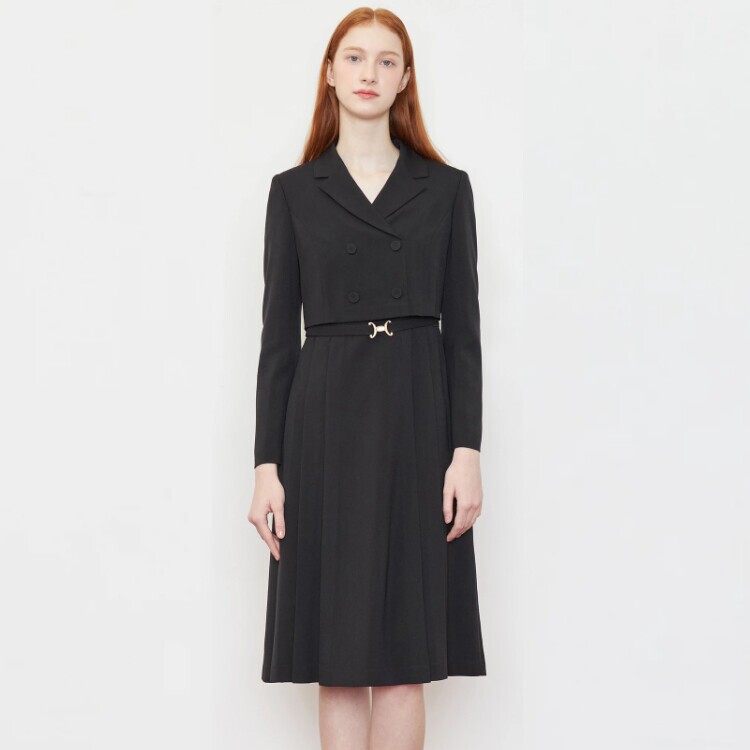 [케네스레이디] 멜란지 더블버튼 플리티드 원피스 EGOPOB9900