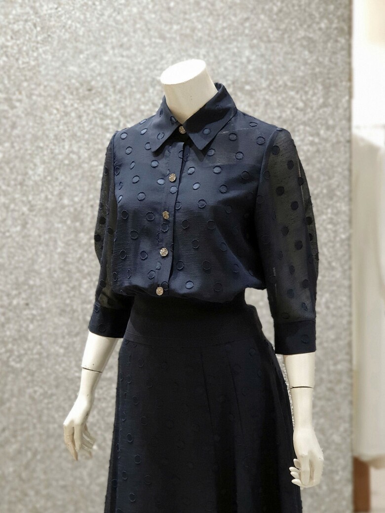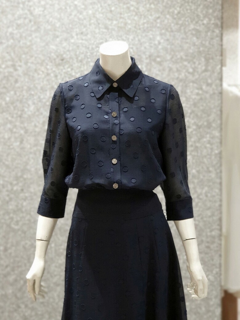_판매종료도트 블루종 블라우스 JR5-A0-BL751
