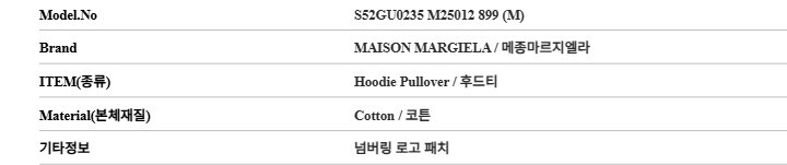 마르지엘라 후드 S52GU0235 M25012 899 MM6 넘버링 로고 패치 여성후드티 당일발송