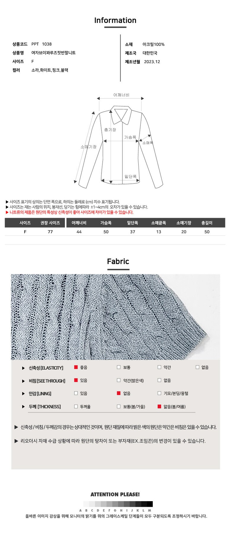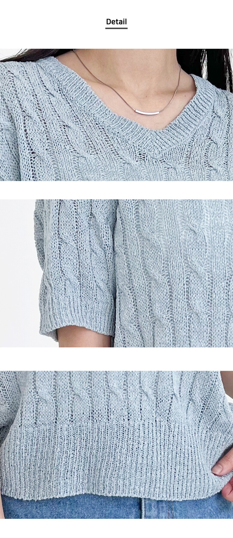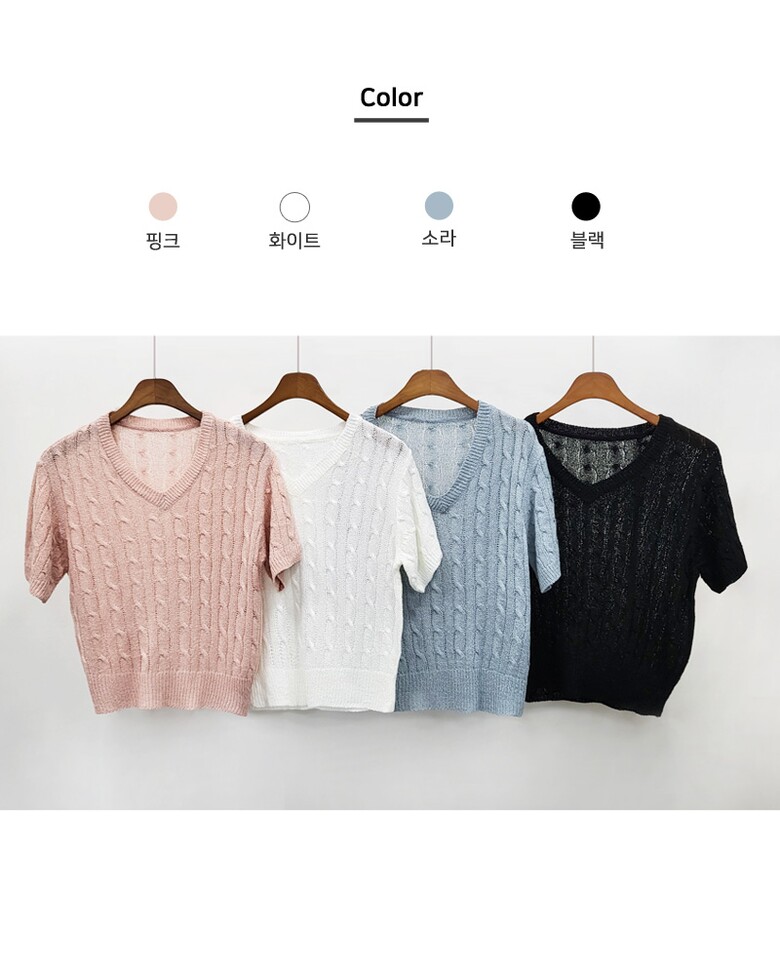 골피아 여자 브이 꽈배기 루즈핏 반팔 니트 여성 데일리 스웨터