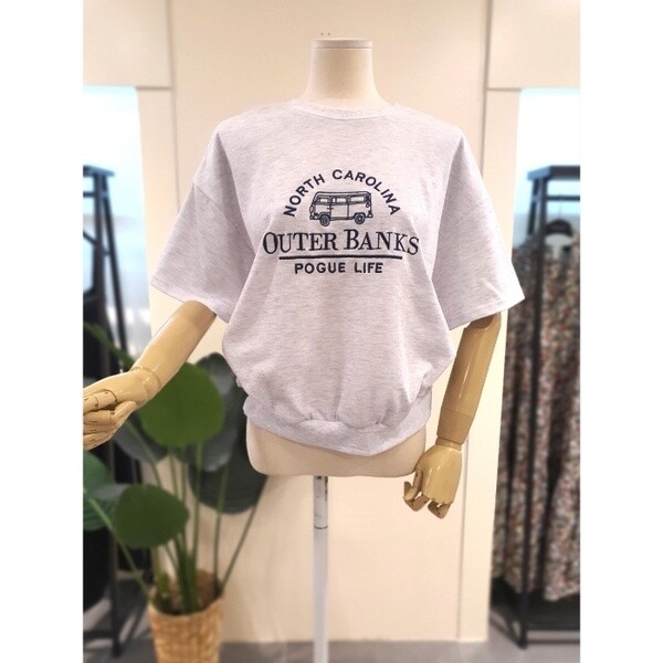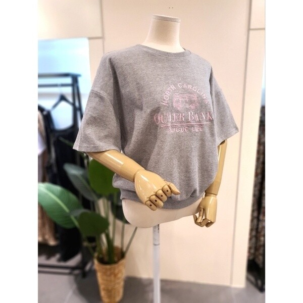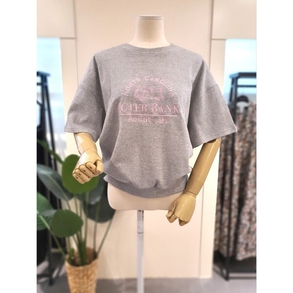 KETSP401GR_포그 자수 반팔 맨투맨 그레이