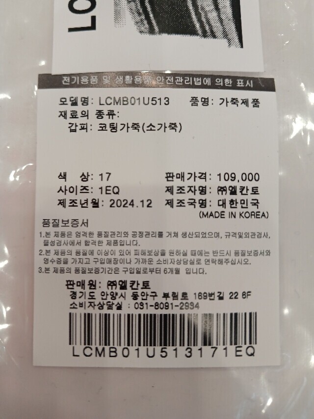 상품불량에 의한 반품, A/S, 품질보증 및 피해보상 등에 관한 사항은 소비자 분쟁해결기준(공정거래위원회 고시) 구매자가 미성년자인 경우에는 상품 구입시 법정대리인이 동의하지 아니하면 미성년자 본인 또는 법정대리인이 구매취소 할 수 있습니다. |