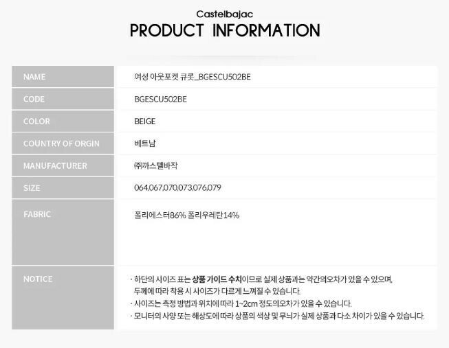 | 1. 품명 및 모델명 | 여성 아웃 포켓 포인트 스커트 |