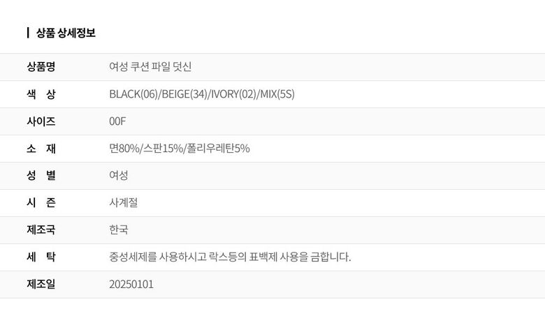 | 2. 소재 | 면80%/스판15%/폴리우레탄5% |