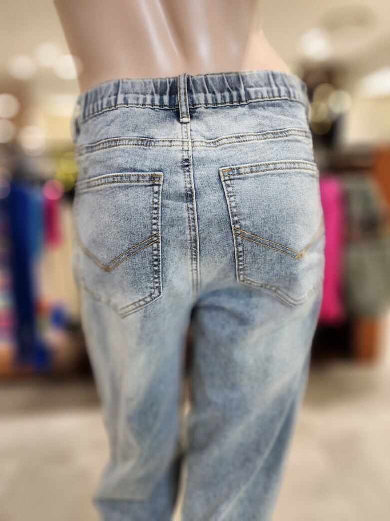 엉덩이와 허벅지 통이 여유있게 나온 배기핏 청바지입니다