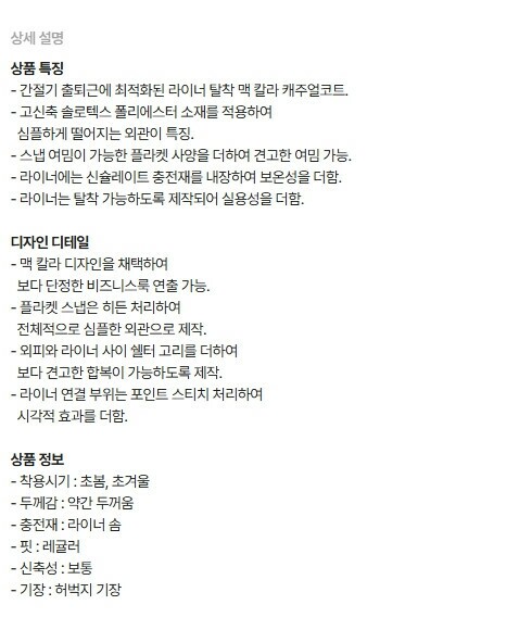 (커뮤터) 라이너 탈착 맥칼라 코트