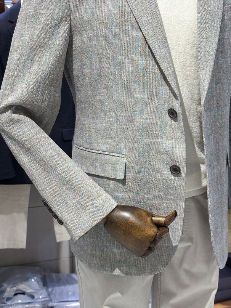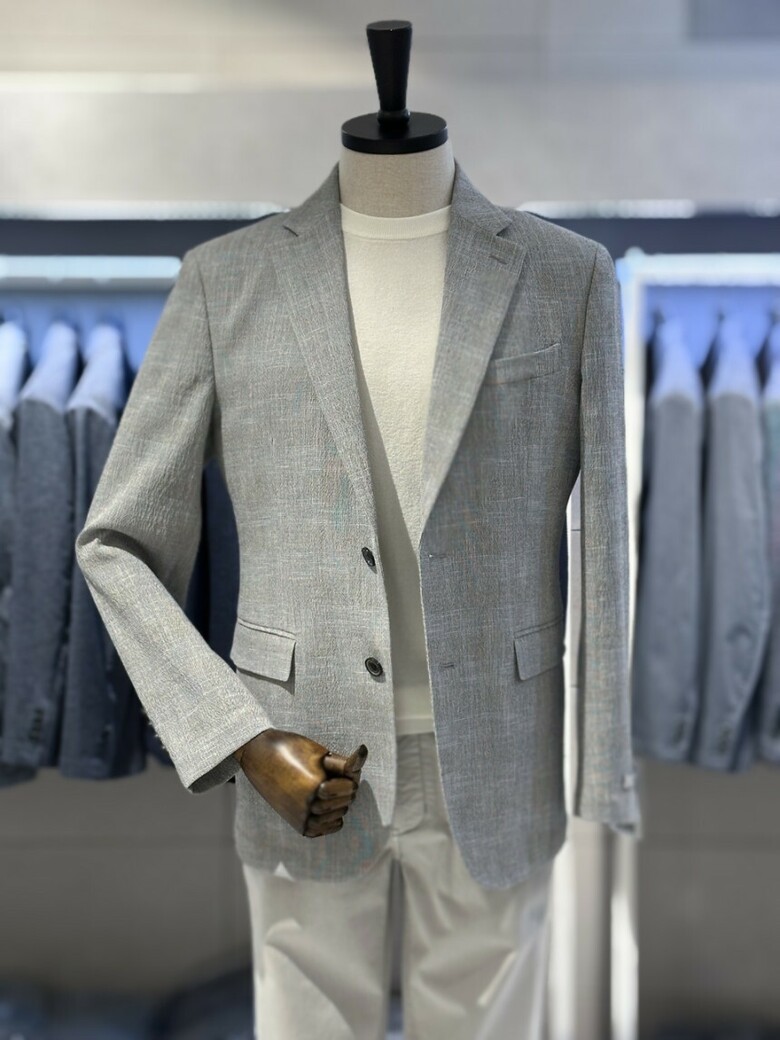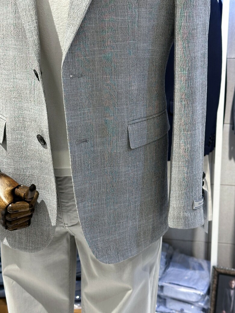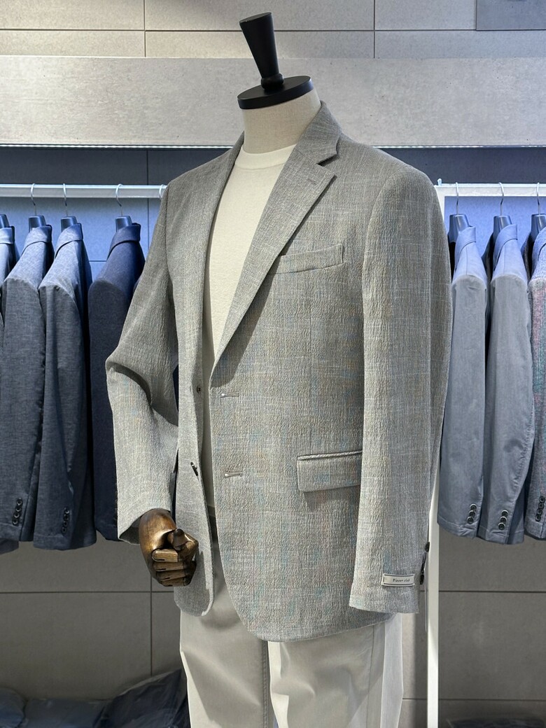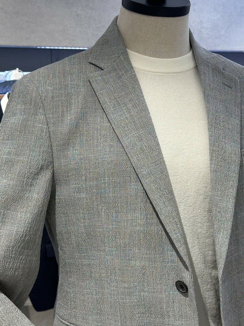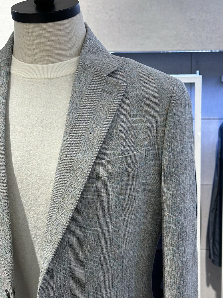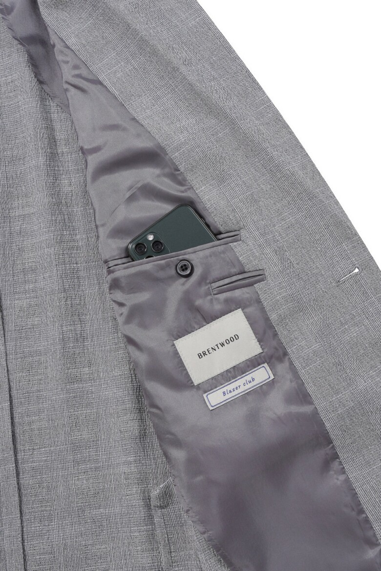 브렌우드 그레이 체크패턴 경량 써커 슬림핏 남자 캐주얼 자켓 BRJBM25551GYX