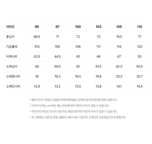 | 6. 세탁방법 및 취급시 주의사항 | 상품상세참조 |