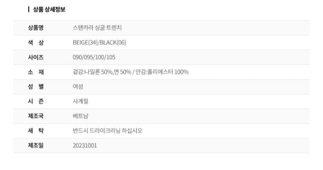 | 6. 세탁방법 및 취급시 주의사항 | 상품상세참조 |