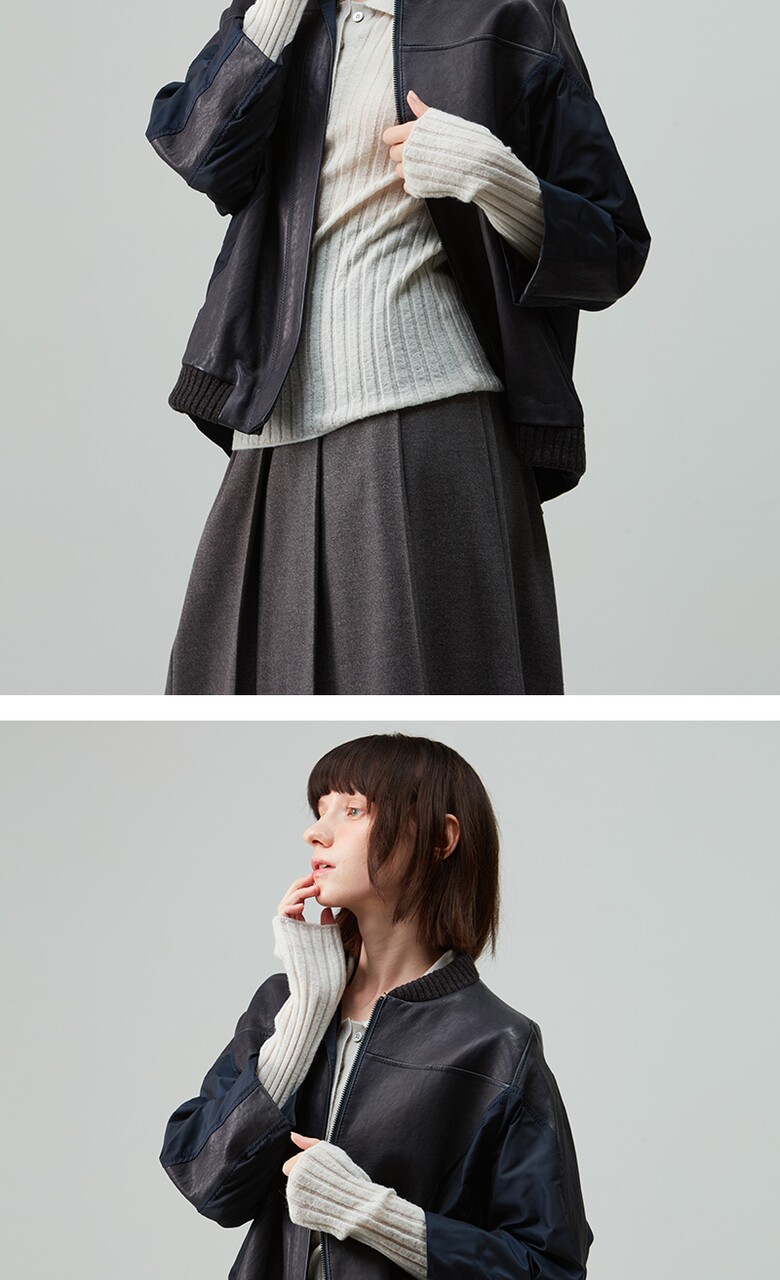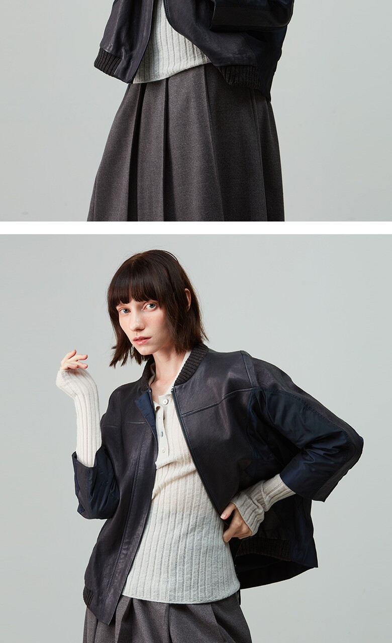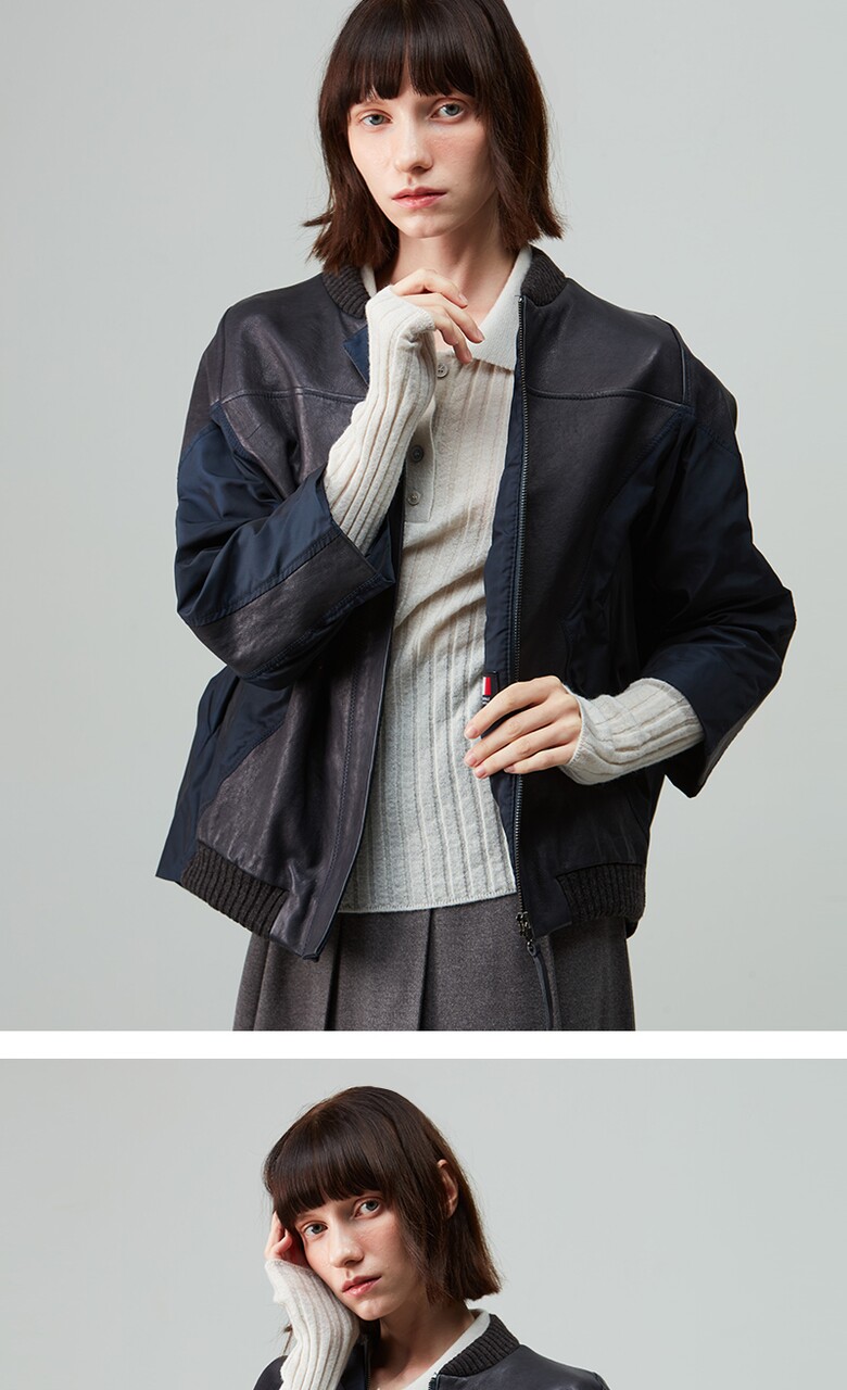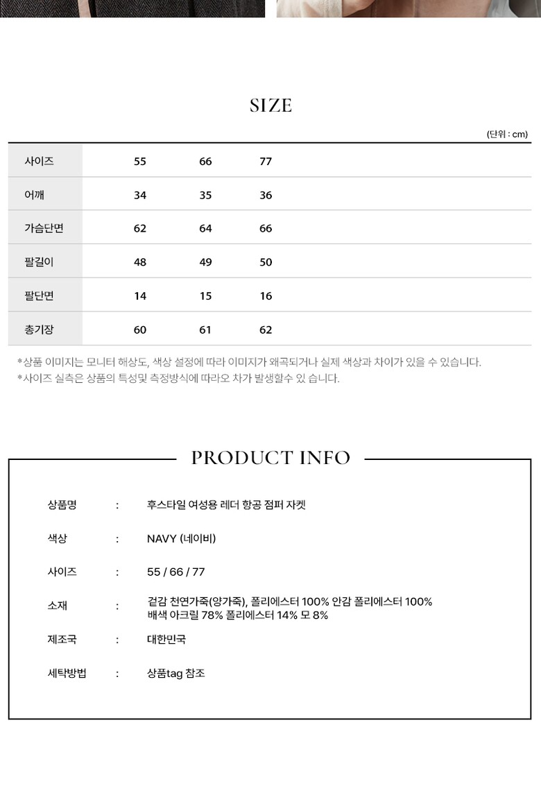 후스타일 여성 레더 항공 점퍼 자켓 네이비