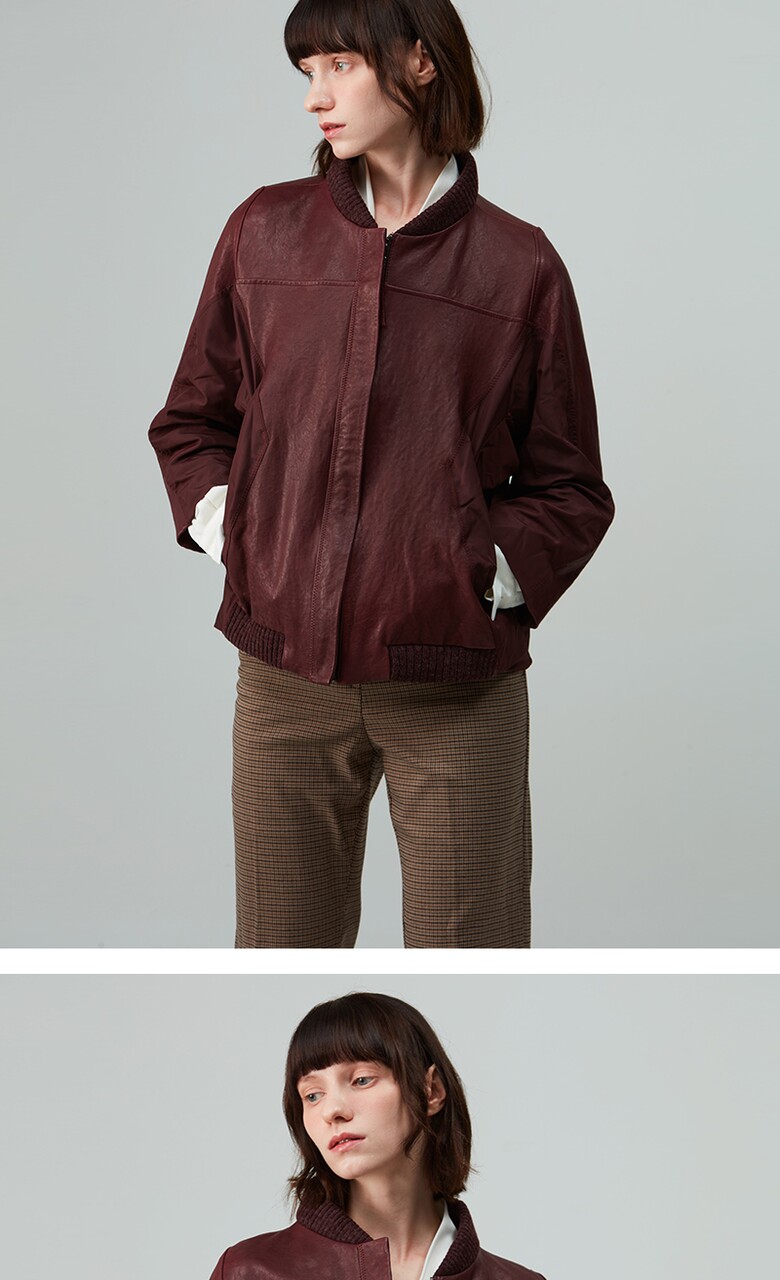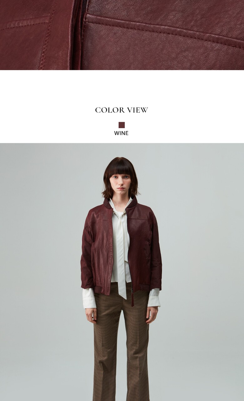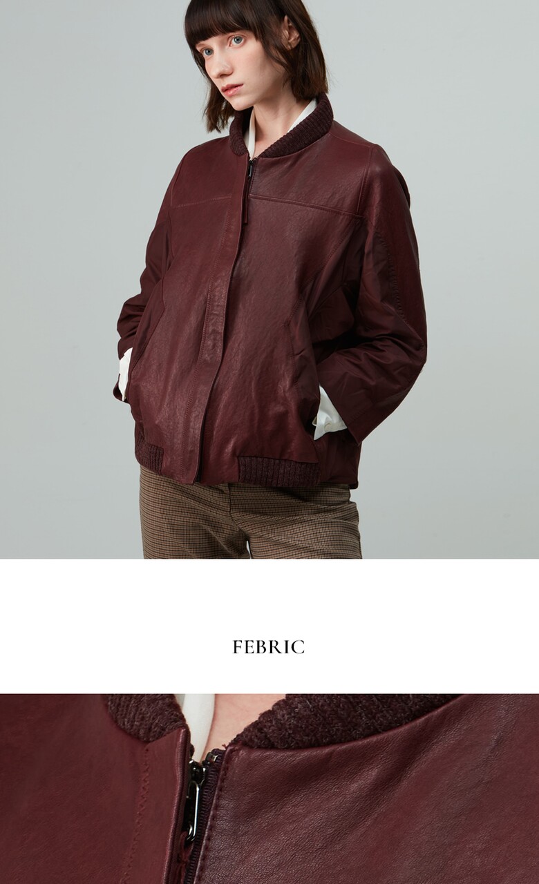 후스타일 여성 레더 항공 점퍼 자켓 와인