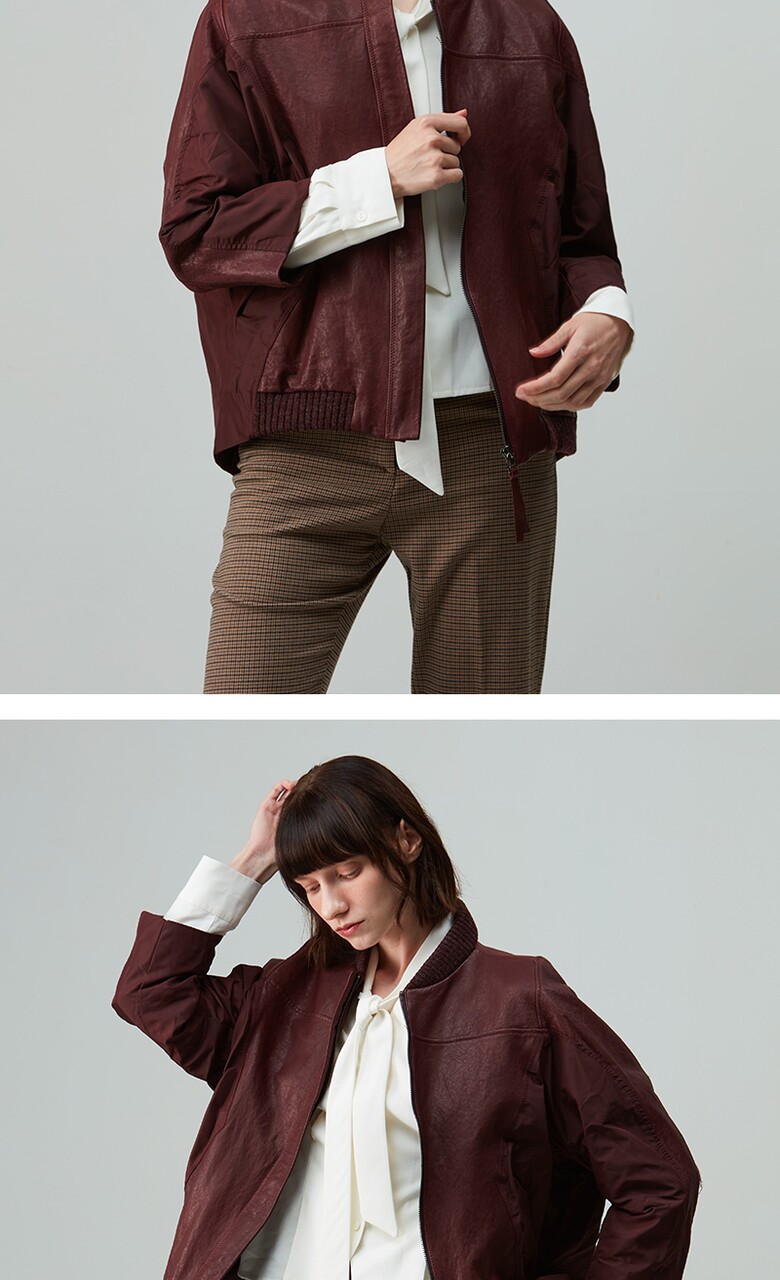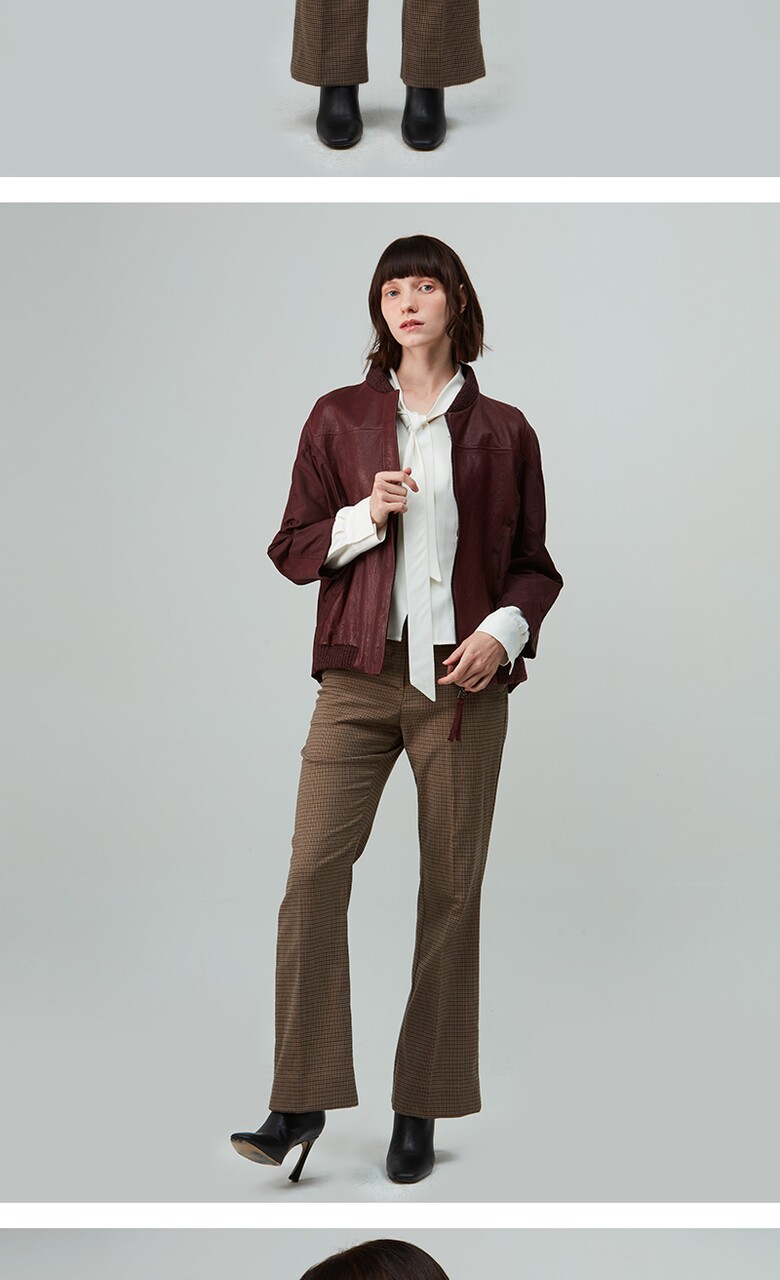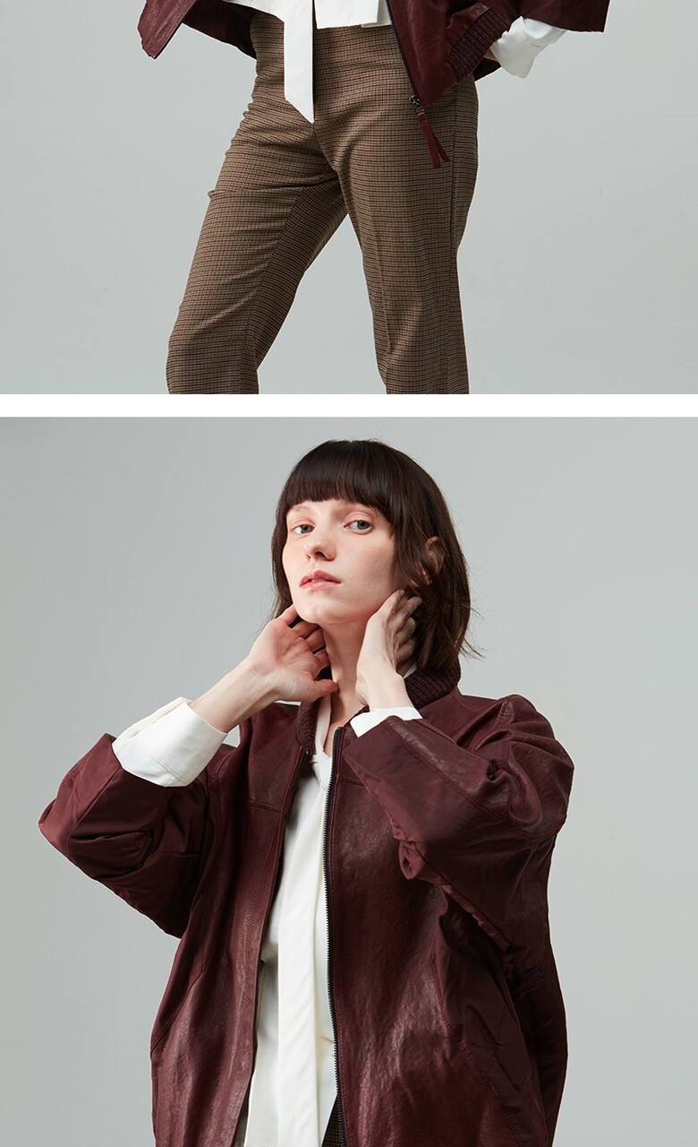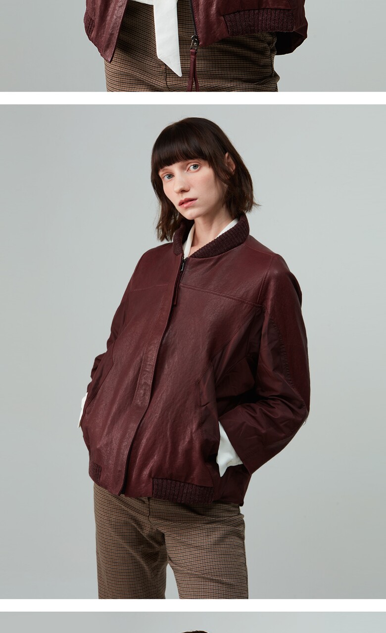 후스타일 여성 레더 항공 점퍼 자켓 와인