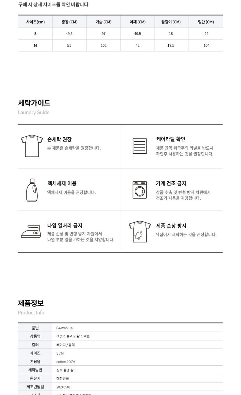 6. 세탁방법 및 취급시 주의사항 상품상세 참조