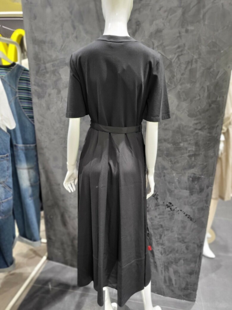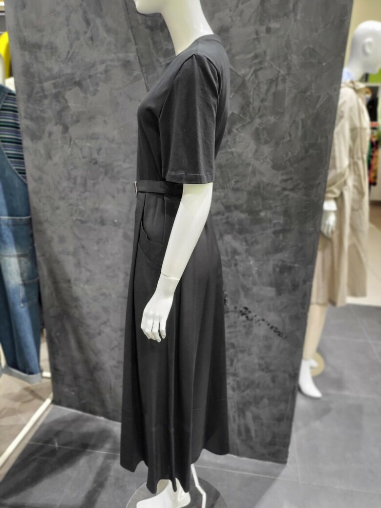부드러운 저지 소재와 폴리 소재가 믹스된 벨티드 원피스입니다.