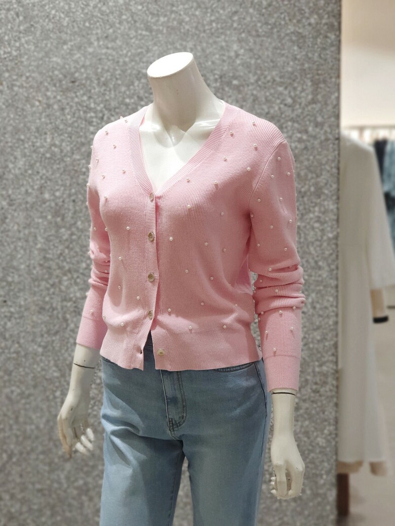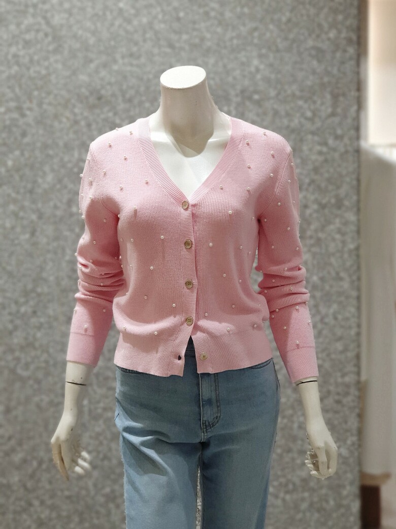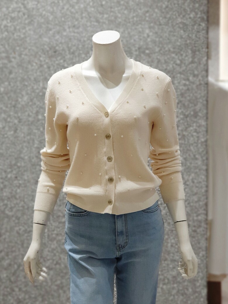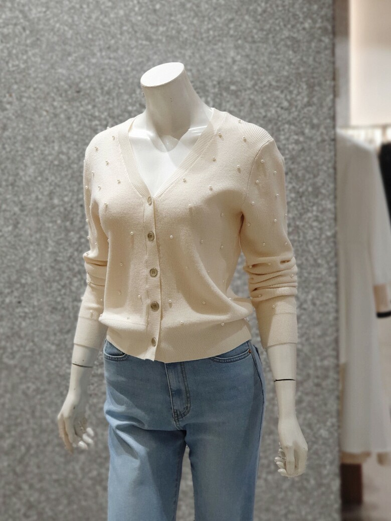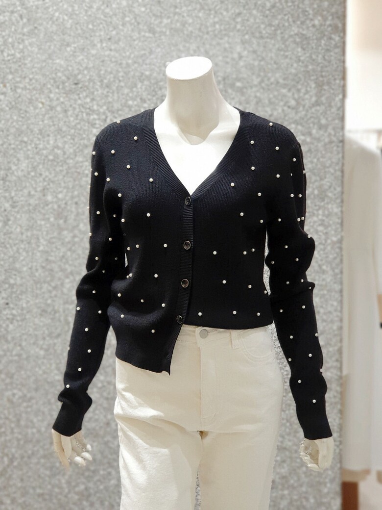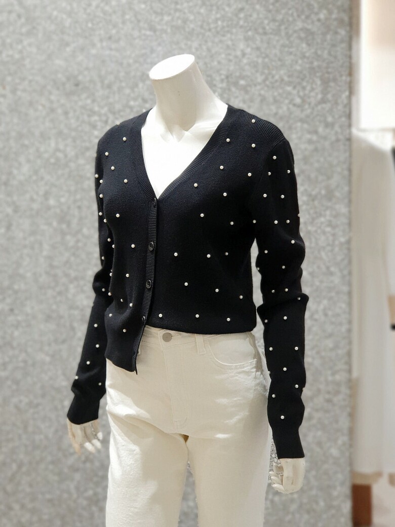 프런트와 소매 진주 장식으로 포인트를 주는 카디건입니다.