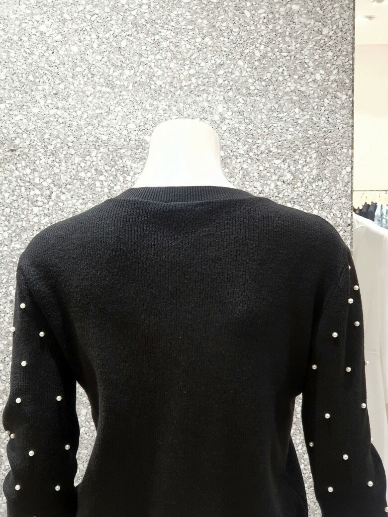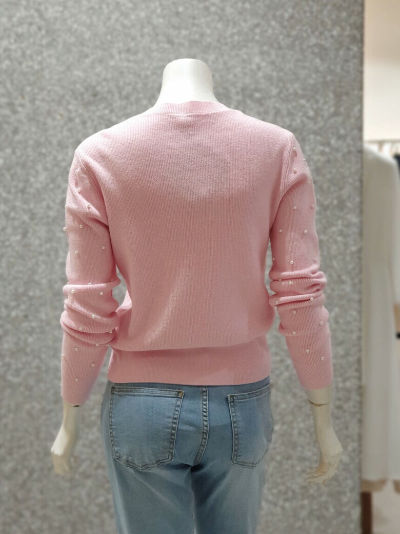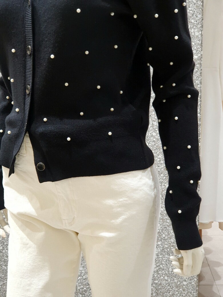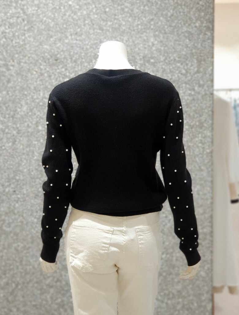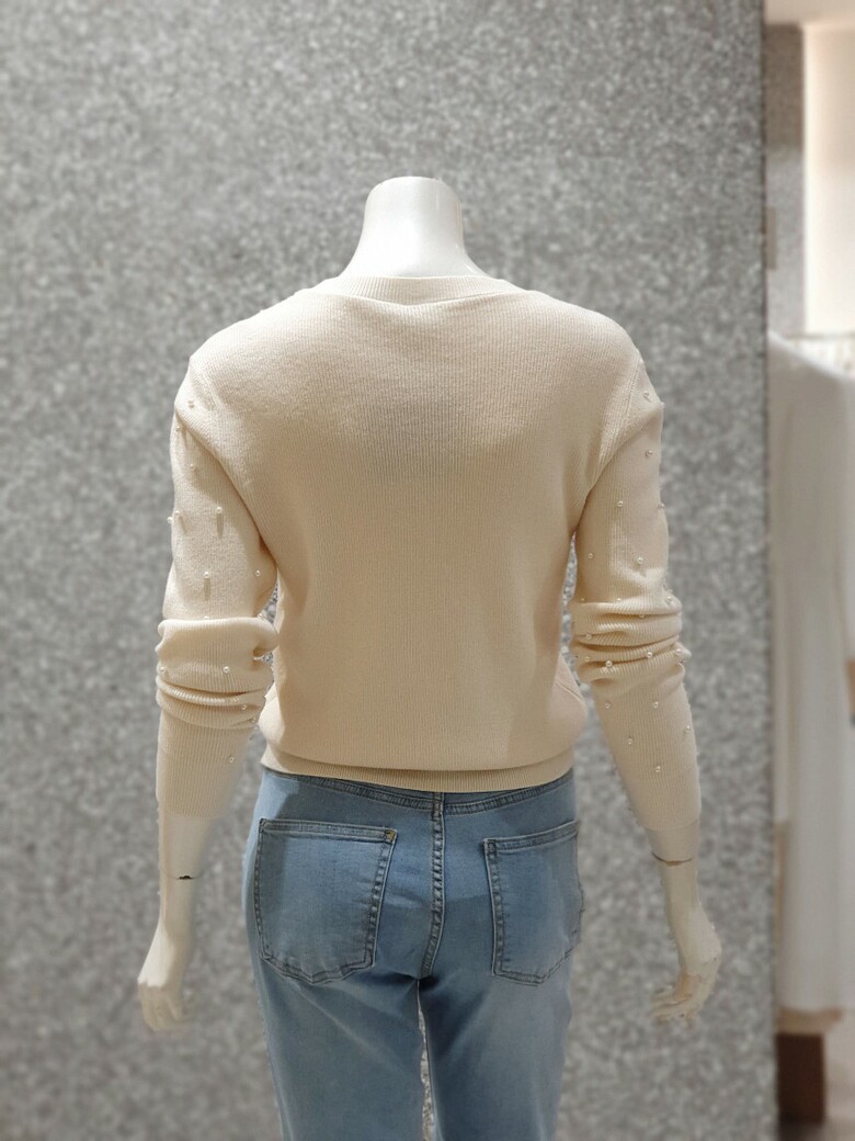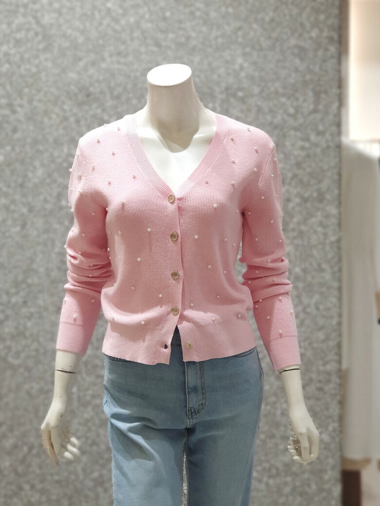 프런트와 소매 진주 장식으로 포인트를 주는 카디건입니다.