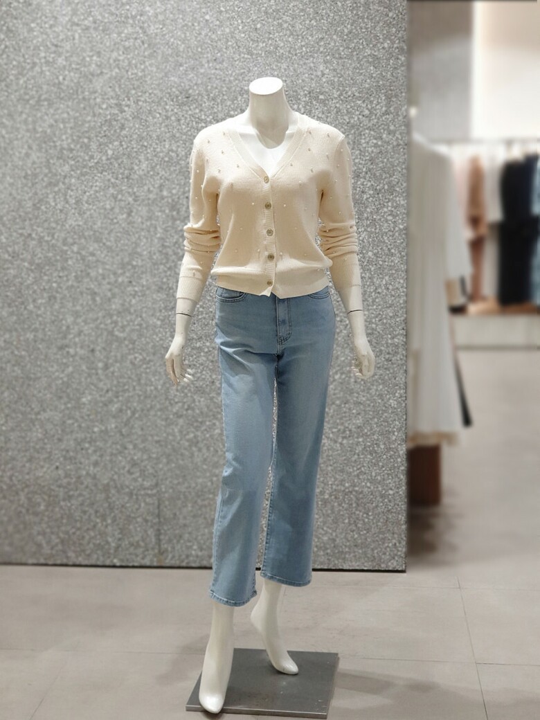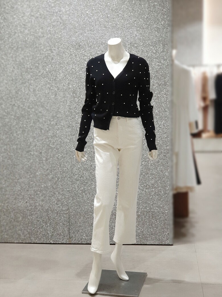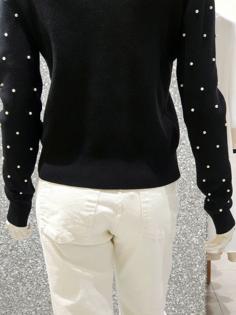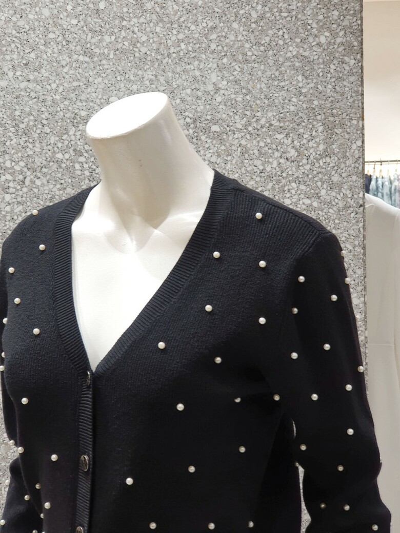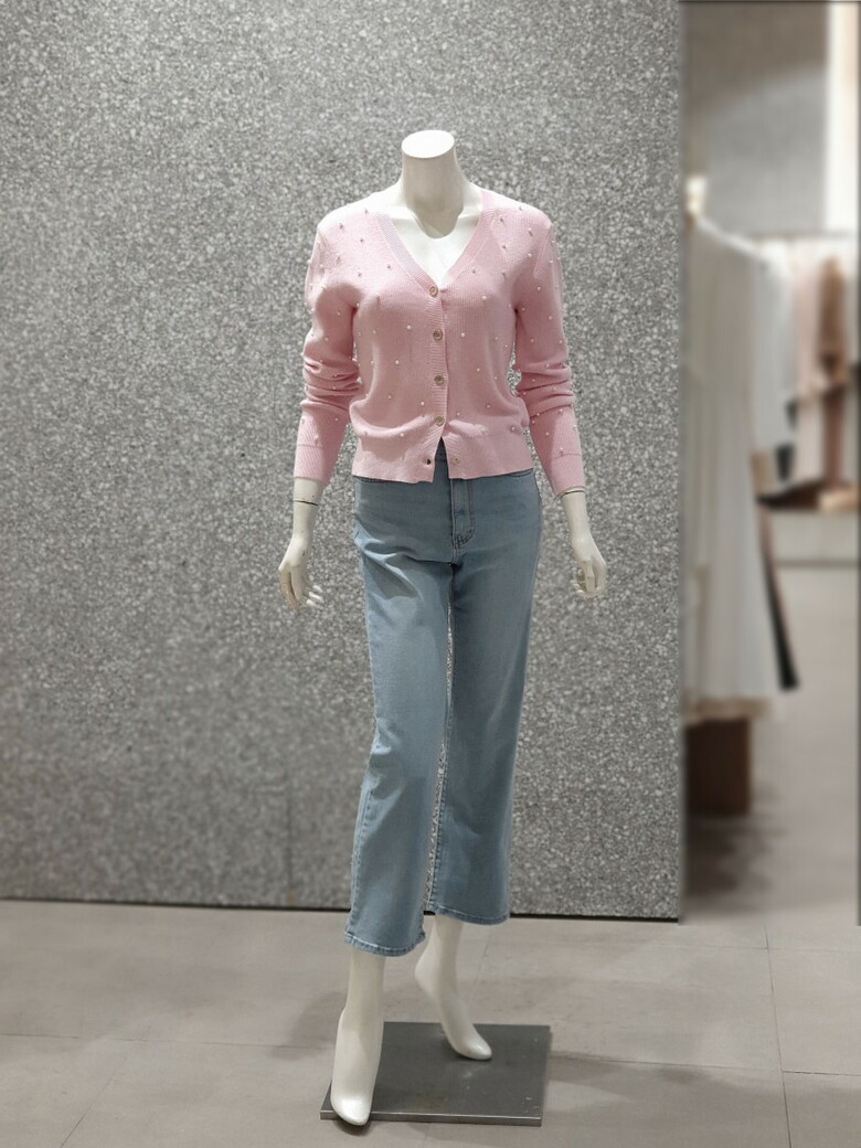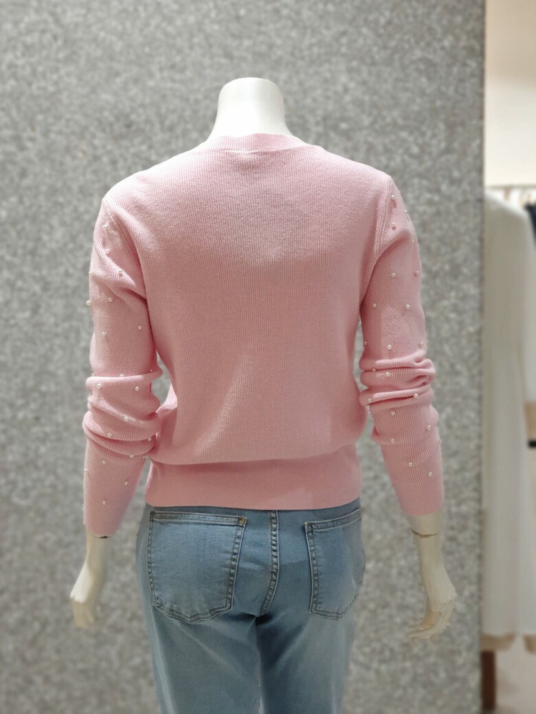 프런트와 소매 진주 장식으로 포인트를 주는 카디건입니다.