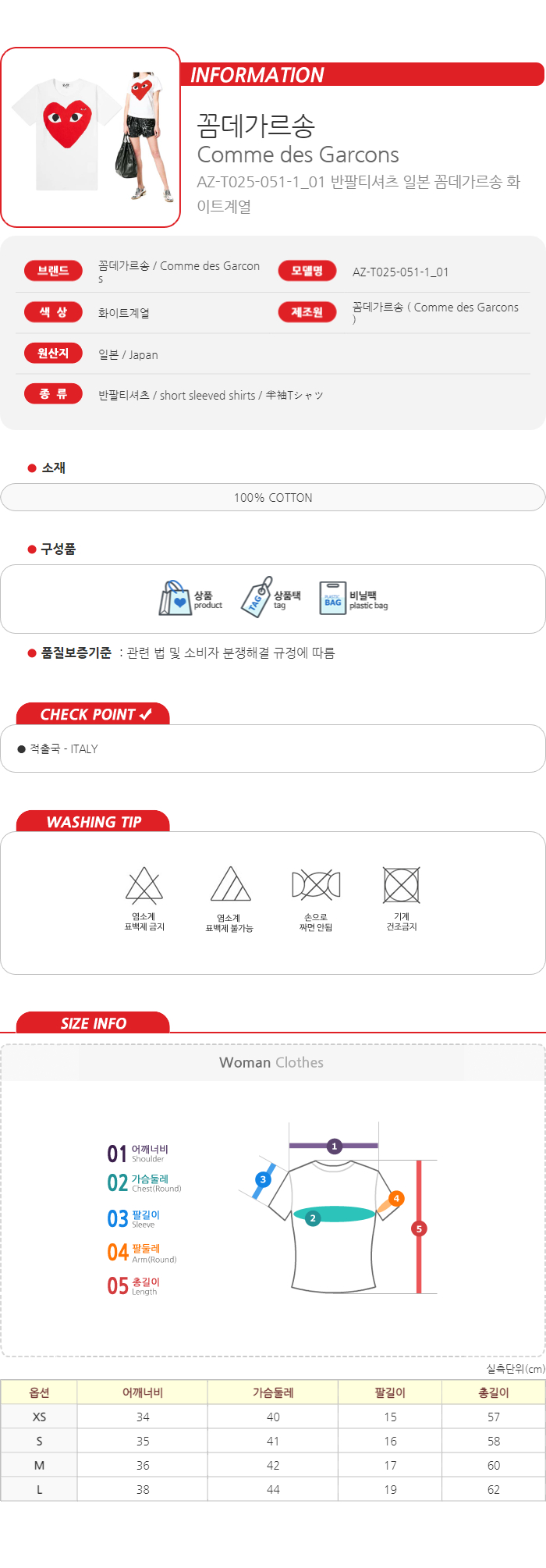 [명품] 꼼데가르송 더블하트 와펜 여성 반팔티 AZ T025 051 1