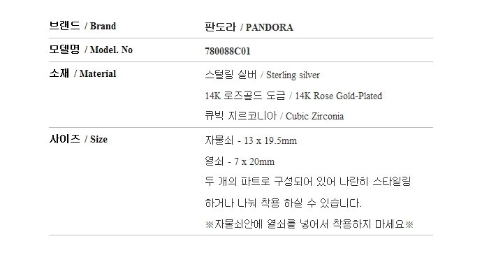 [명품] 판도라 780088C01 패들락 & 키 로즈 펜던트 겸 댕글 참