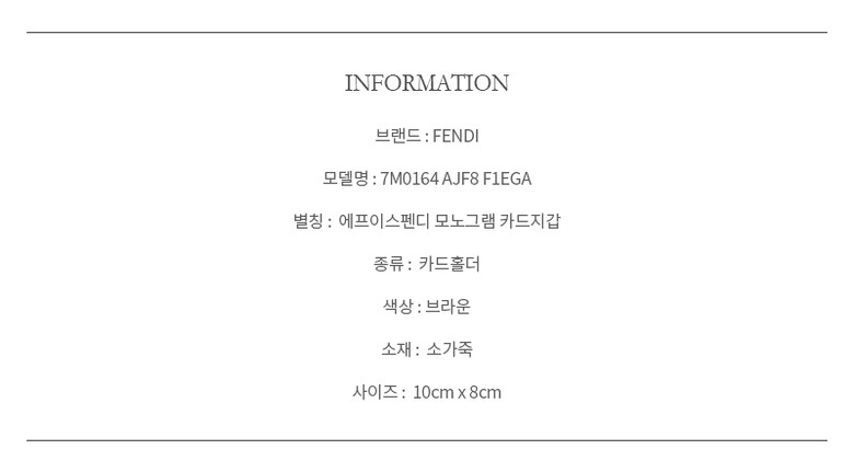 #리본즈코리아 #7M0164AJF8F1EGA #[명품] #펜디 #다이고널 #카드지갑 #브라운 #7M0164 #AJF8 #F1EGA #여성 #지갑 #카드/명함지갑 #카드지갑홀더