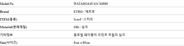[명품] 에트로 WATA0016AV434 X0889 플로럴 페이즐리 프린트 실크 스카프