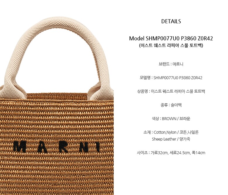 #리본즈코리아 #SHMP0077U0P3860Z0R42 #[명품] #마르니 #라피아 #스몰 #토트백 #브라운 #SHMP0077U0 #P3860 #Z0R42 #여성 #가방/핸드백
