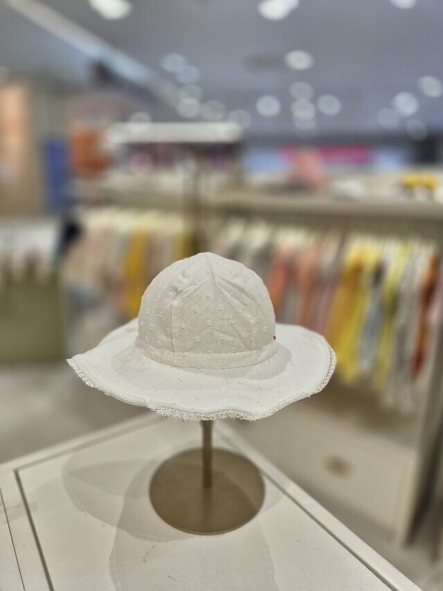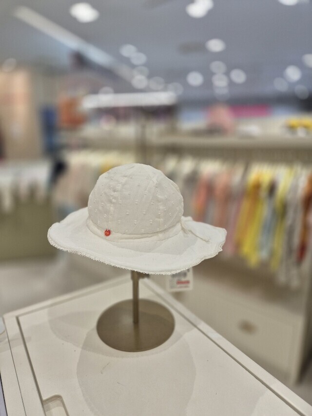 면 소재의 넓은 챙의 여아 모자입니다