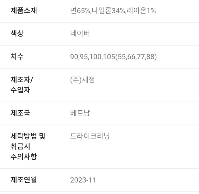 1. 제품 소재 (섬유의 조성 또는 혼용률을 백분율로 표시, 기능성인 경우 성적서 또는 허가서) 상품상세참조