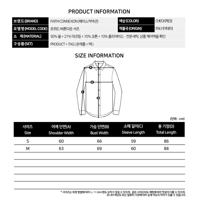 - #리본즈코리아 #EMW21243520 #[명품] #페이스커넥션 #21FW #트위드 #버튼다운 #블랙 #셔츠 #EMW21243 #520 #남성 #의류 #블라우스/셔츠 #캐주얼셔츠