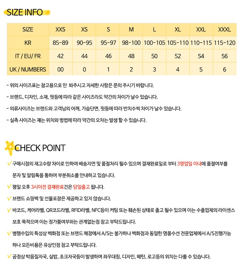 • 처음 배송된 상품상태와 다를 경우(세탁/착용 후 외출하신 경우) 반품이 불가합니다.