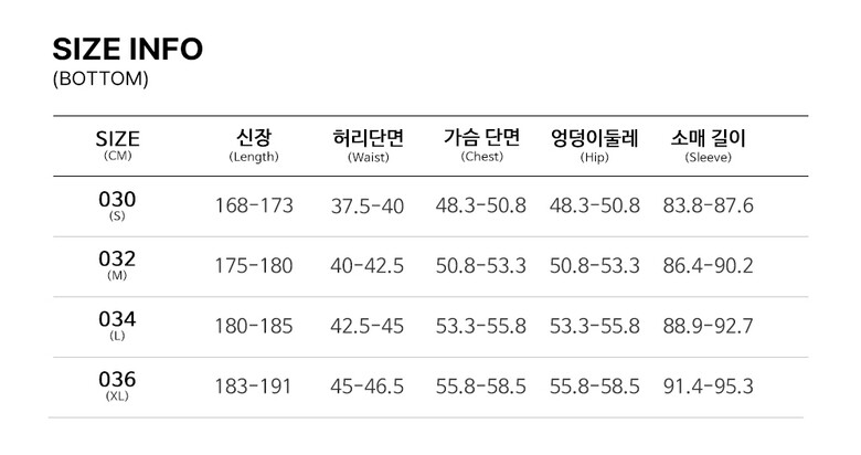 | 3. 치수 | 30,32,34,36,38 |