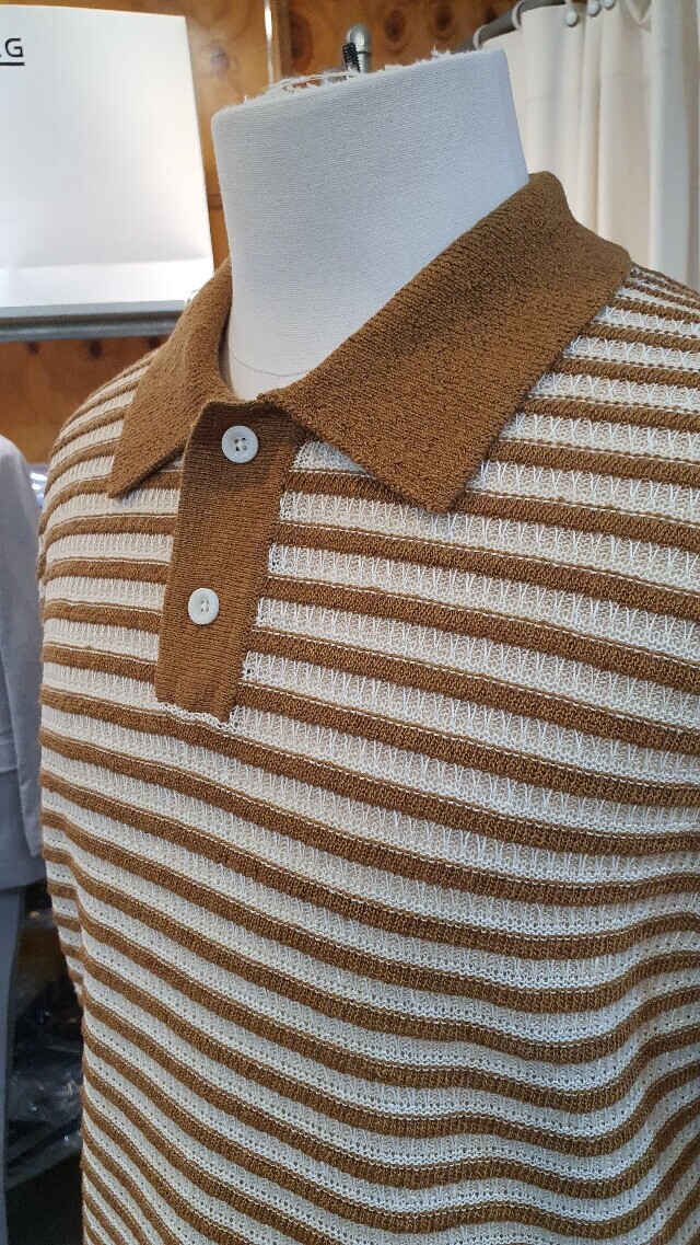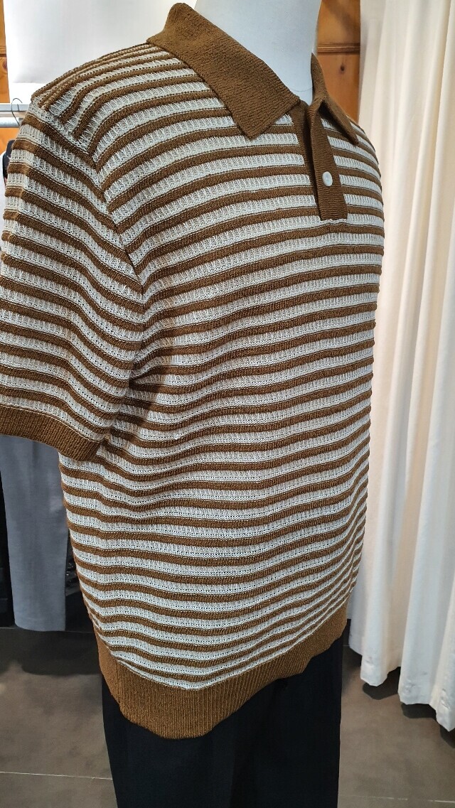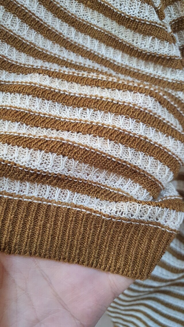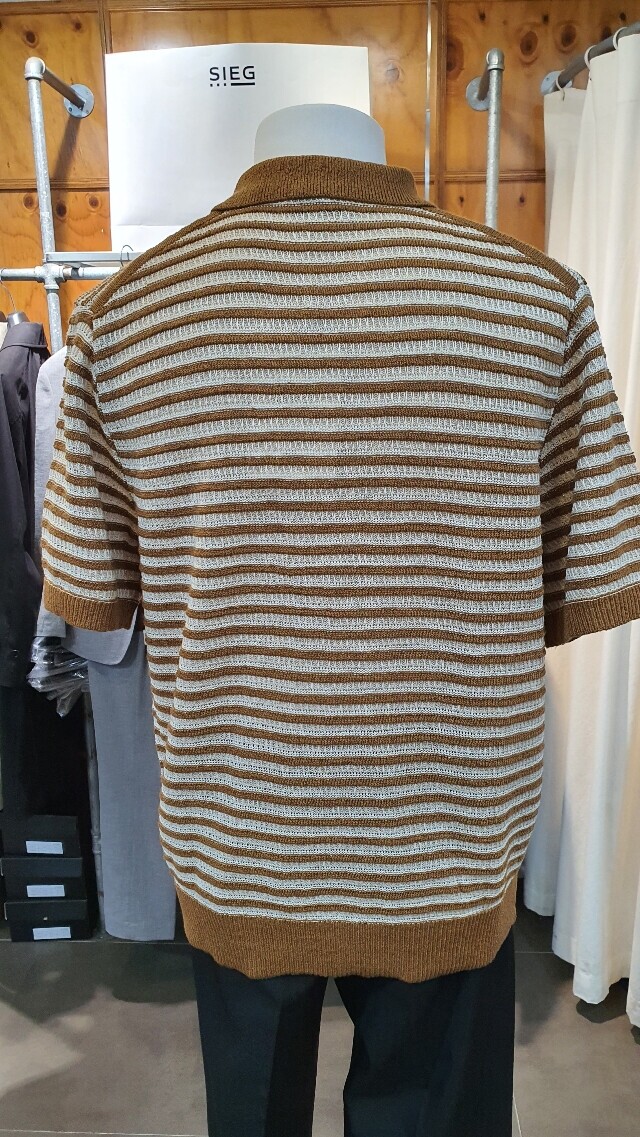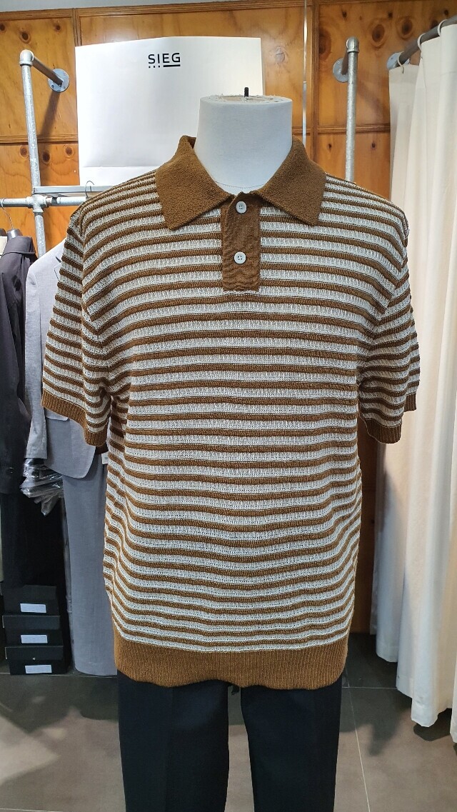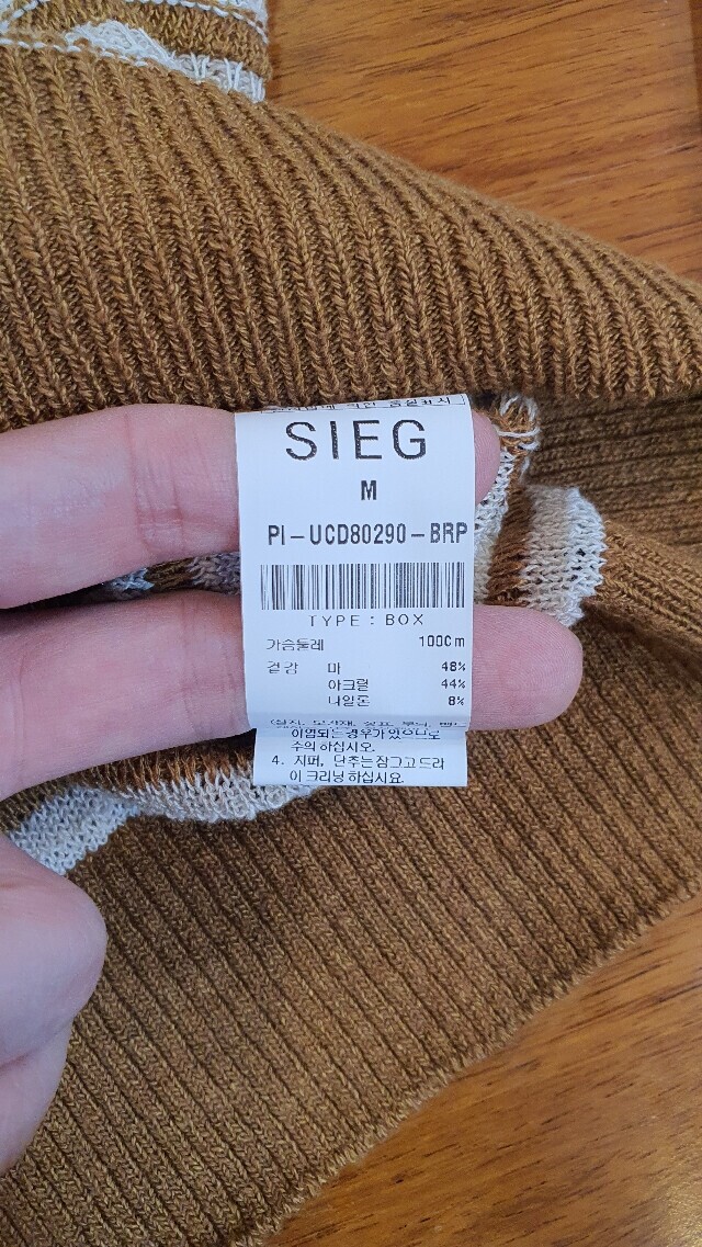 지이크 브라운 린넨 혼방 배색 니트 PIUCD8029