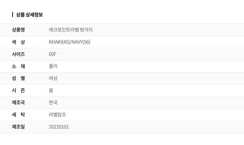 | 2. 소재 | 겉감:폴리에스터82% 폴리우레탄4% 레이온14% |
