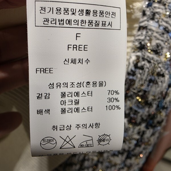 제품소재 : 겉감 폴리에스터 70% 아크릴 30% / 배색 폴리에스터 100%