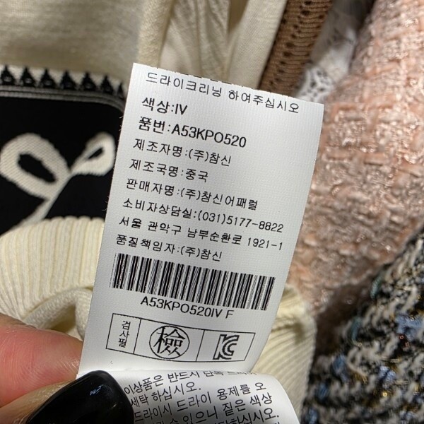 제조자 : (주)참신어패럴