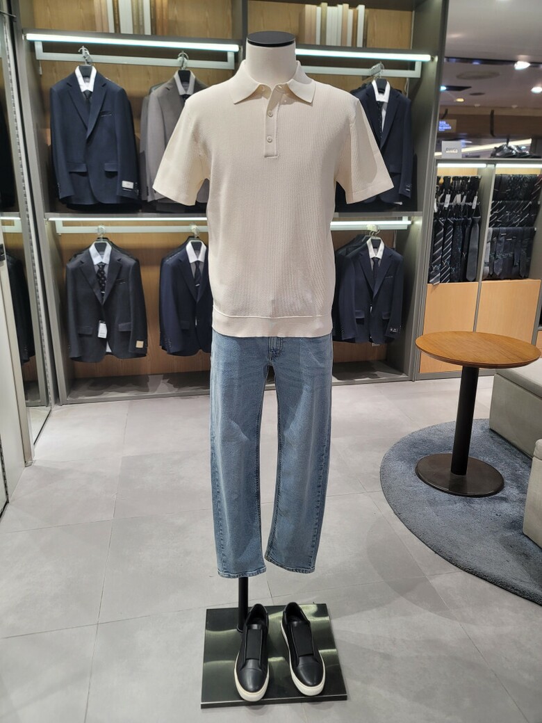 #카라니트 #비지니스캐쥬얼 #비지니스캐주얼 #여름니트 #시원한소재 #기본니트 #슬랙스코디 #청바지코디 #출근룩 #통기성좋은소재