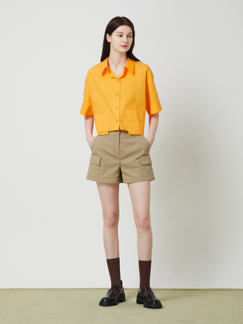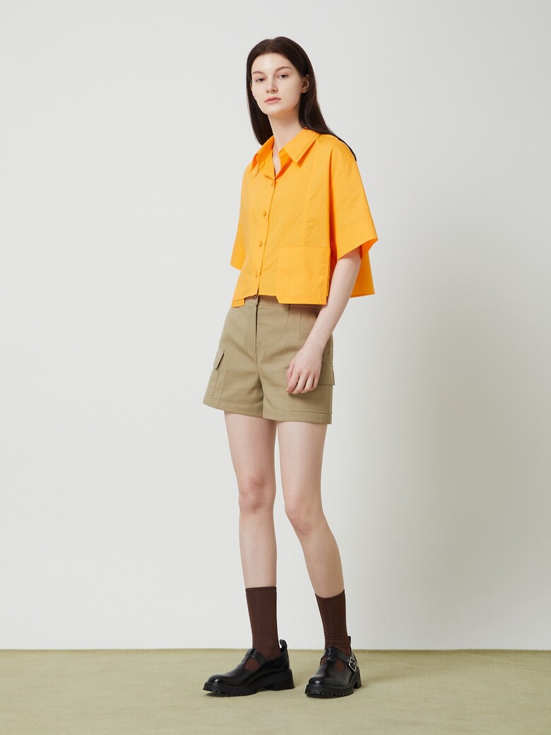 - 힘있는 코튼 혼방 원단을 사용한 카고 숏 팬츠입니다.