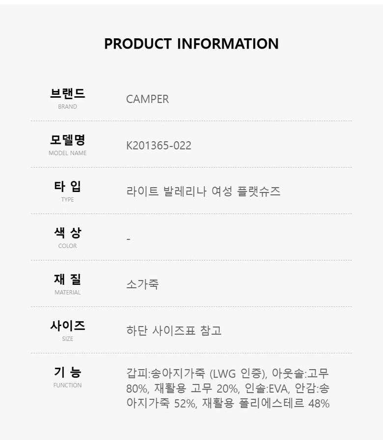 캠퍼 라이트 발레리나 플랫슈즈 K201365-022