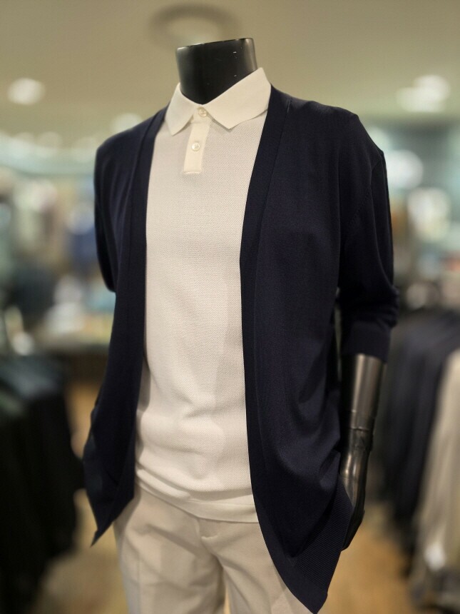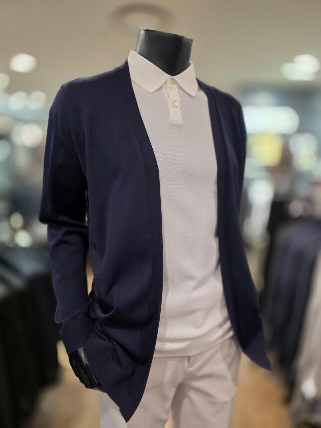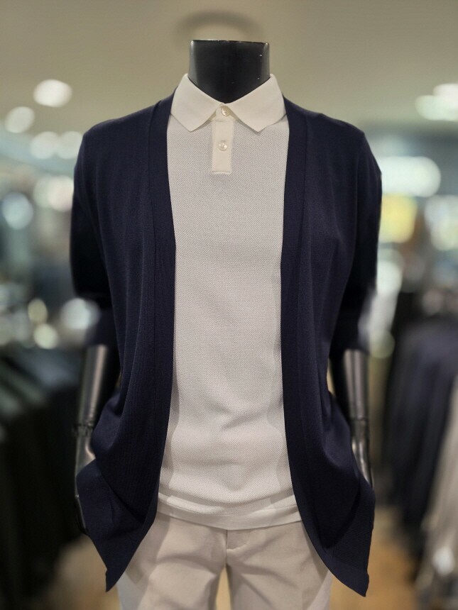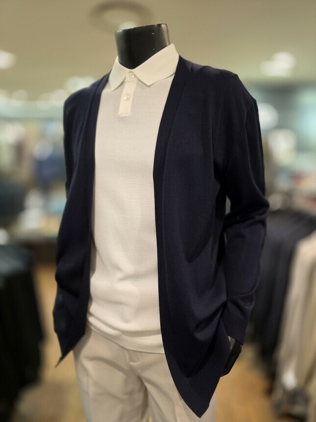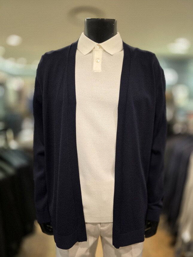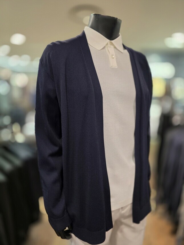 [바쏘옴므] WSZ2-G W 02-ANY S/S 네이비 아사 노포켓 오버핏 숄더 카디건