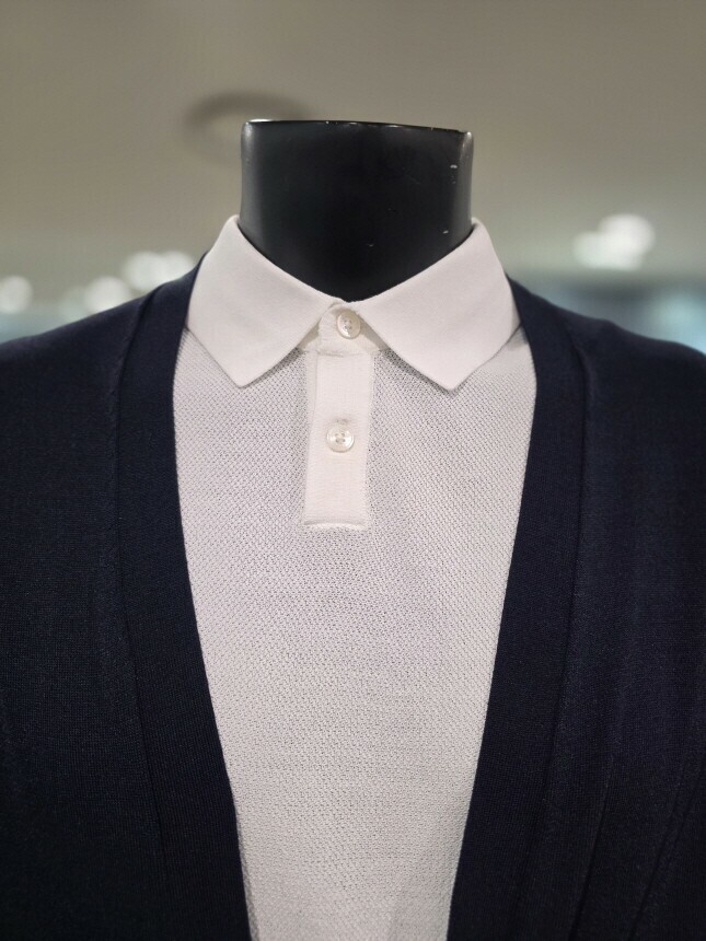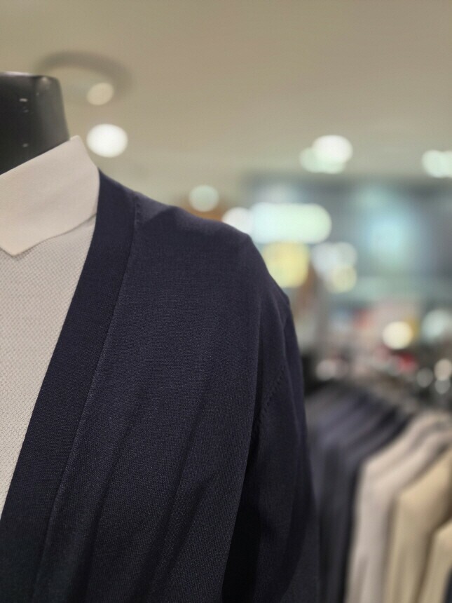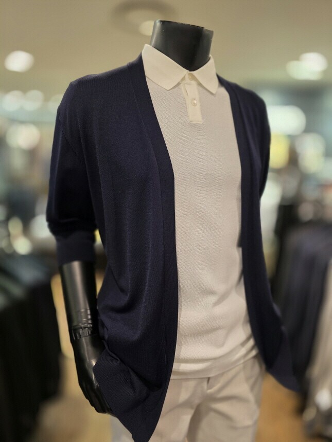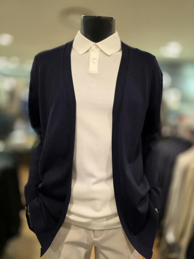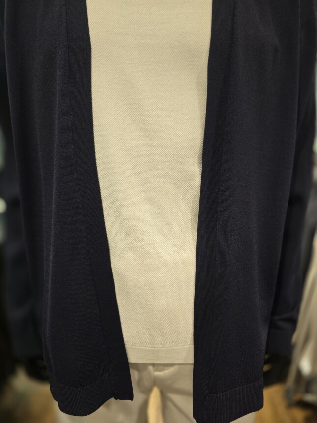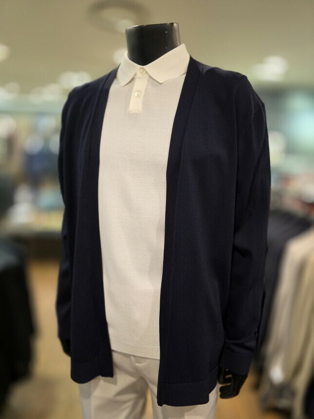 [바쏘옴므] WSZ2-G W 02-ANY S/S 네이비 아사 노포켓 오버핏 숄더 카디건