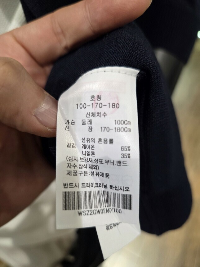 | 1. 제품 소재 (섬유의 조성 또는 혼용률을 백분율로 표시, 기능성인 경우 성적서 또는 허가서) | 겉감 : 레이온 65% , 나일론 35% (심지,보강재,상표,무늬,밴드,자수, |