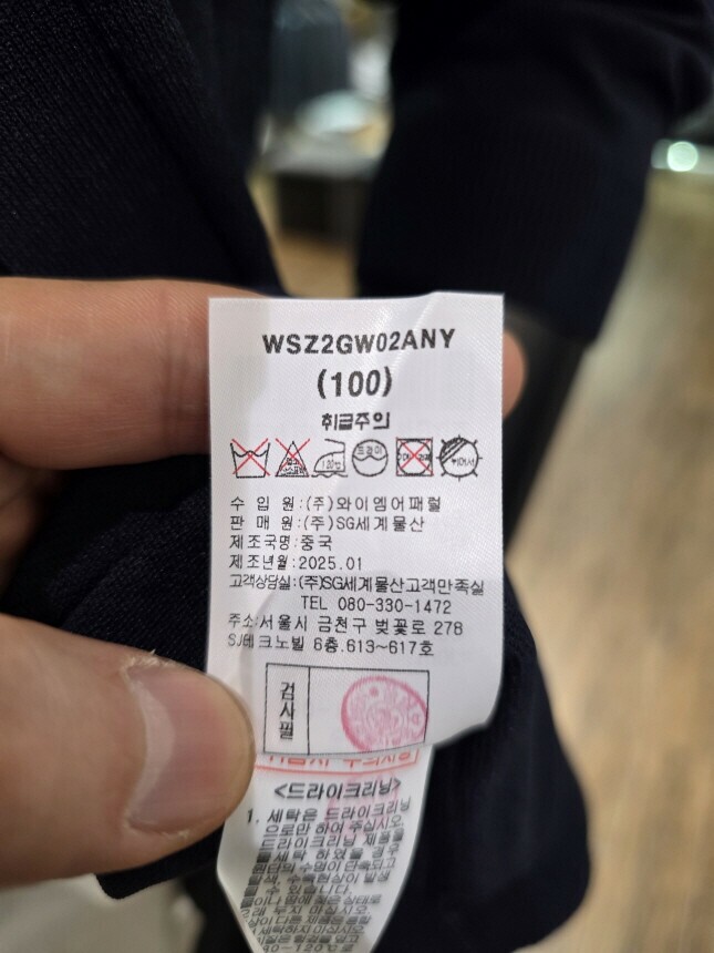| 6. 세탁방법 및 취급시 주의사항 | 드라이크리닝 |