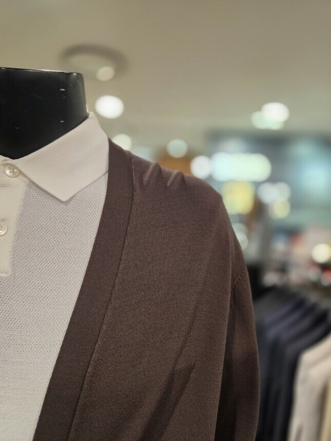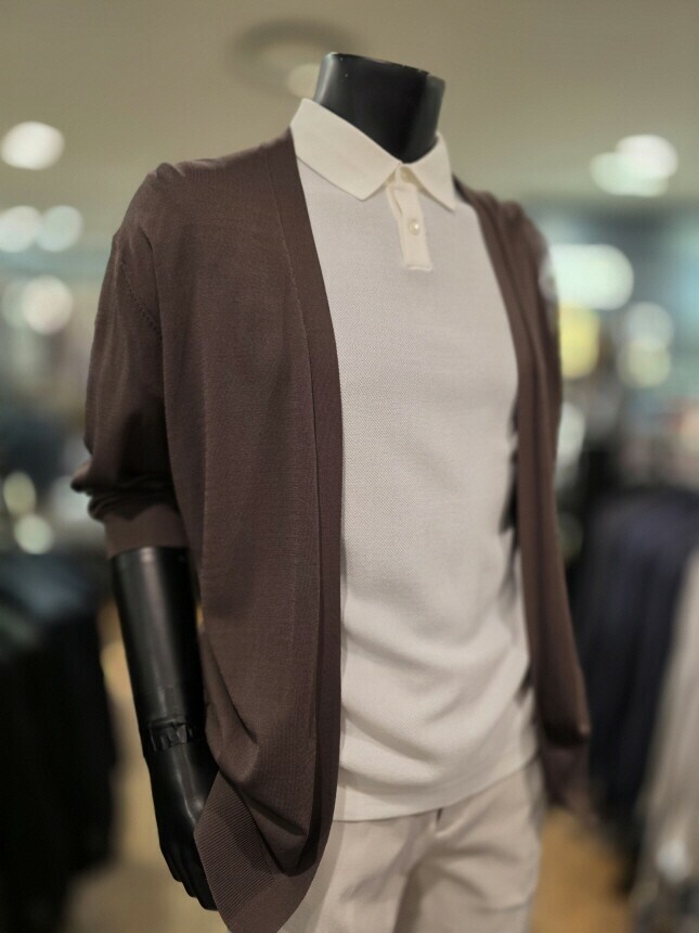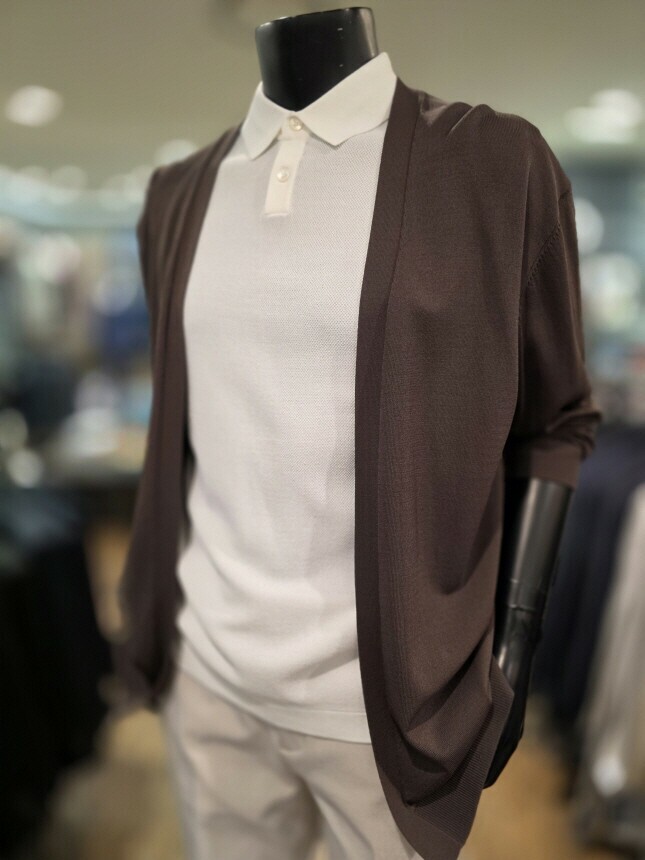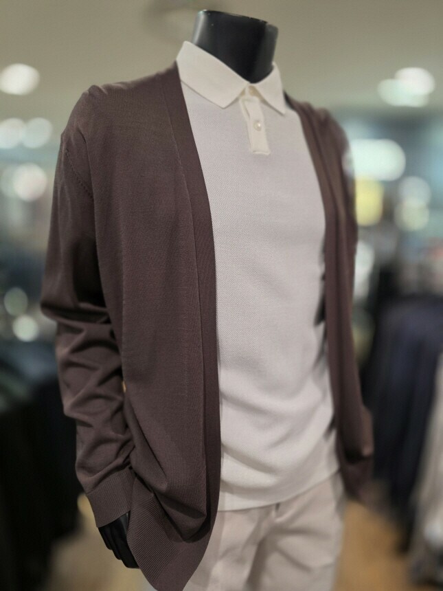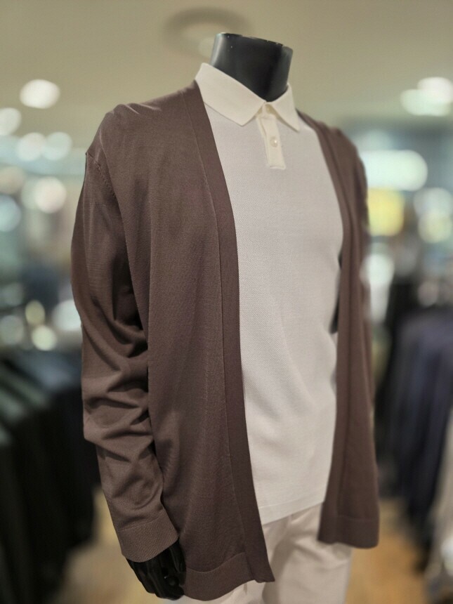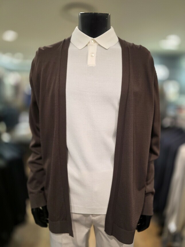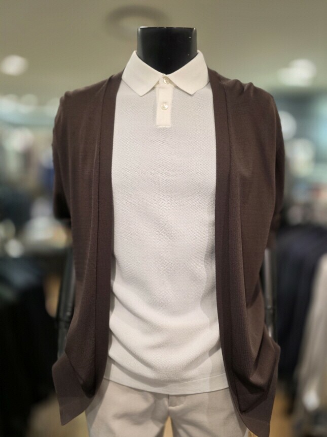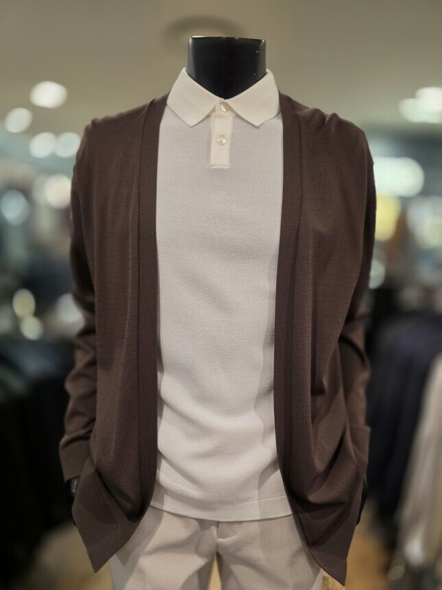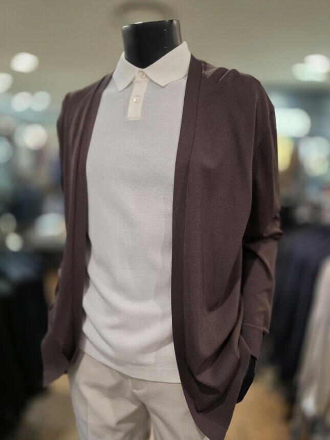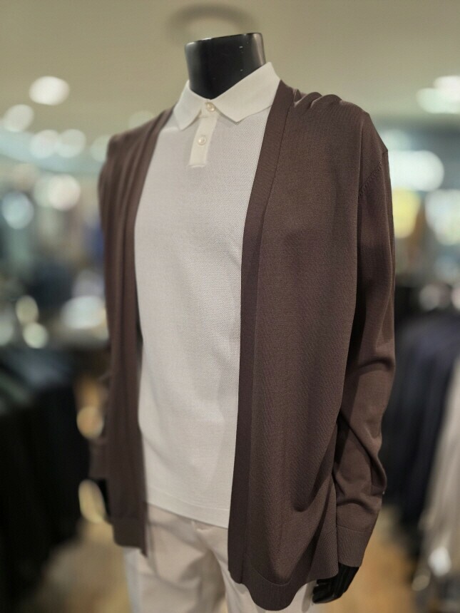 [바쏘옴므] WSZ2-G W 03-ABR S/S 브라운 아사 노포켓 오버핏 숄더 카디건